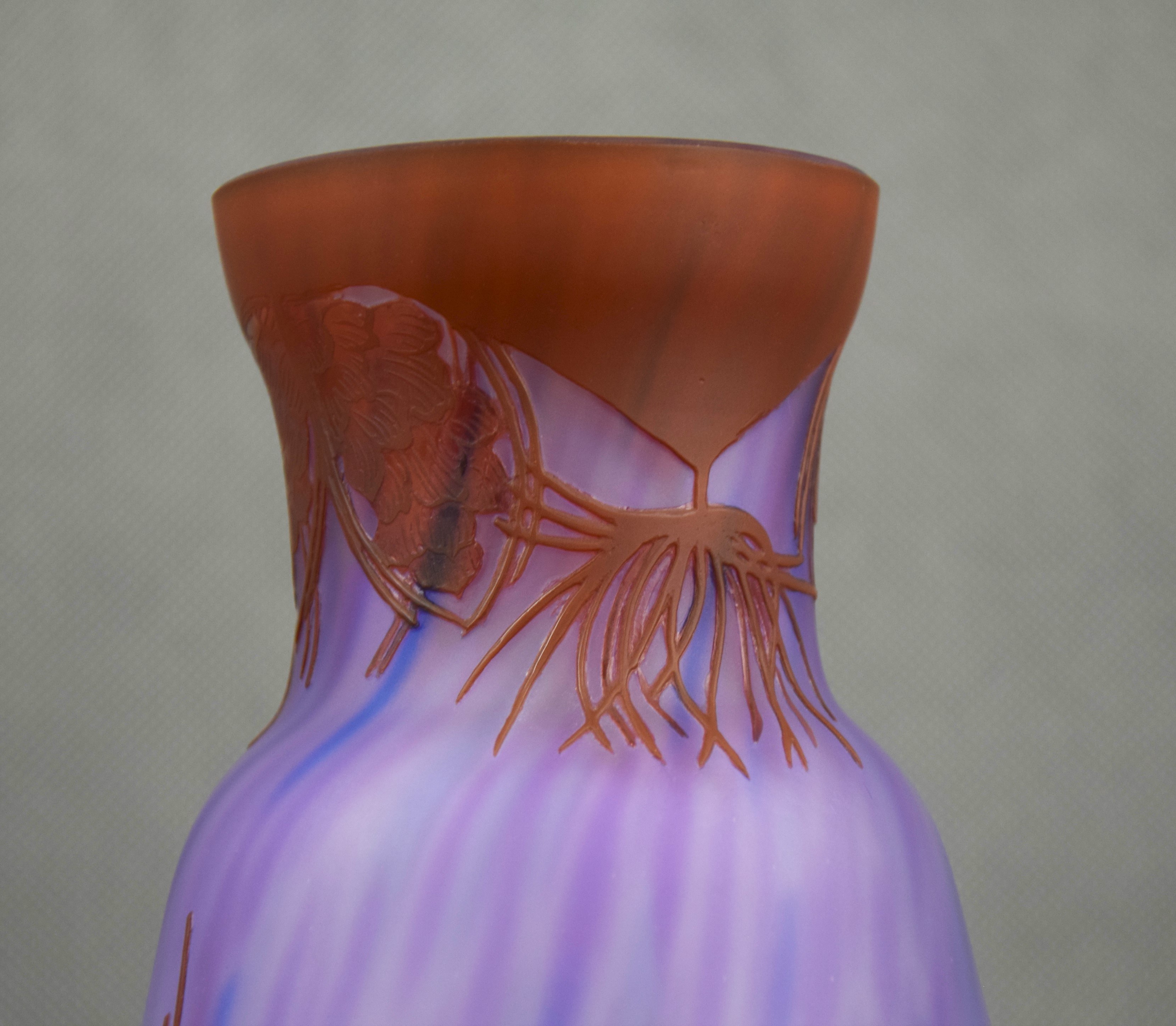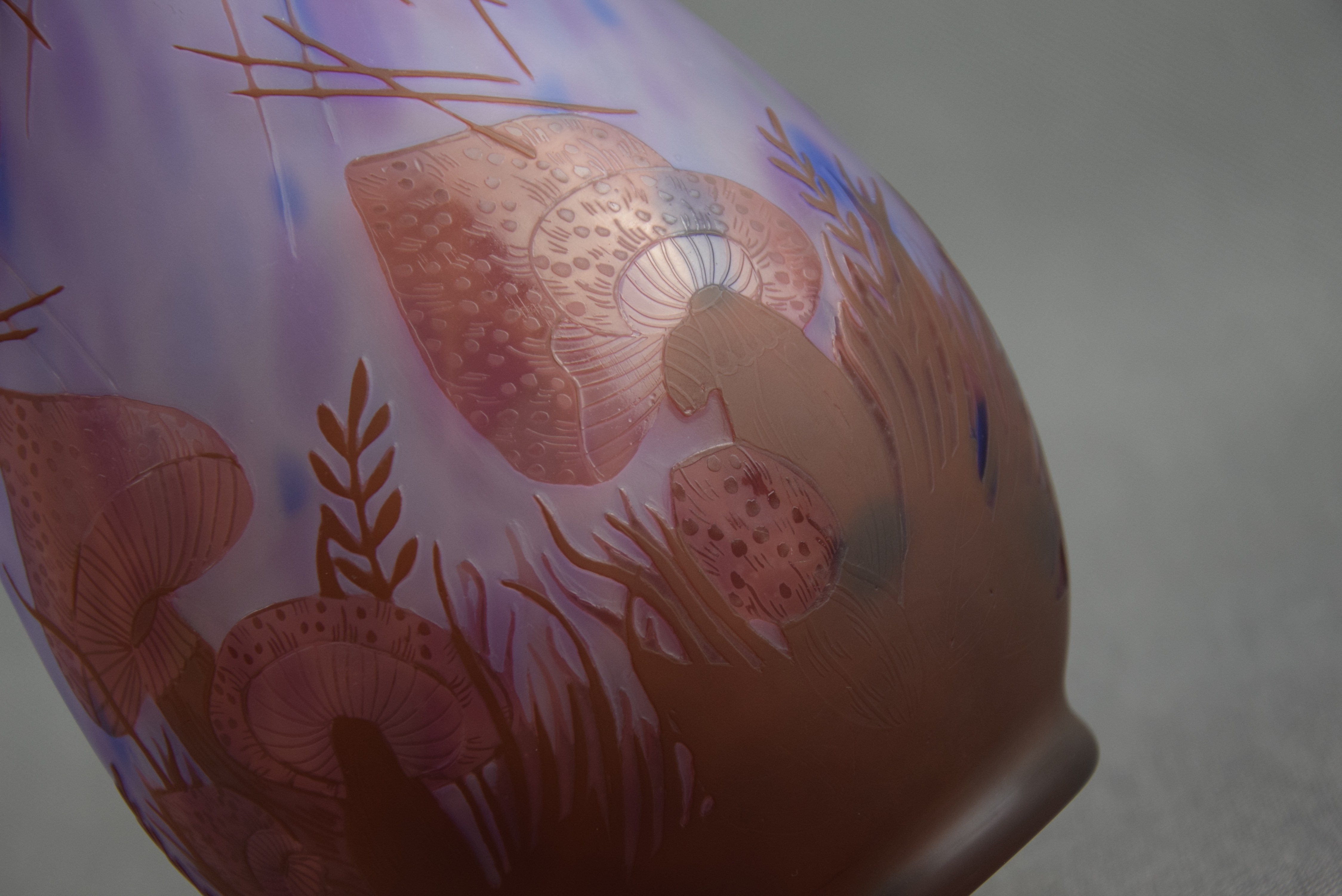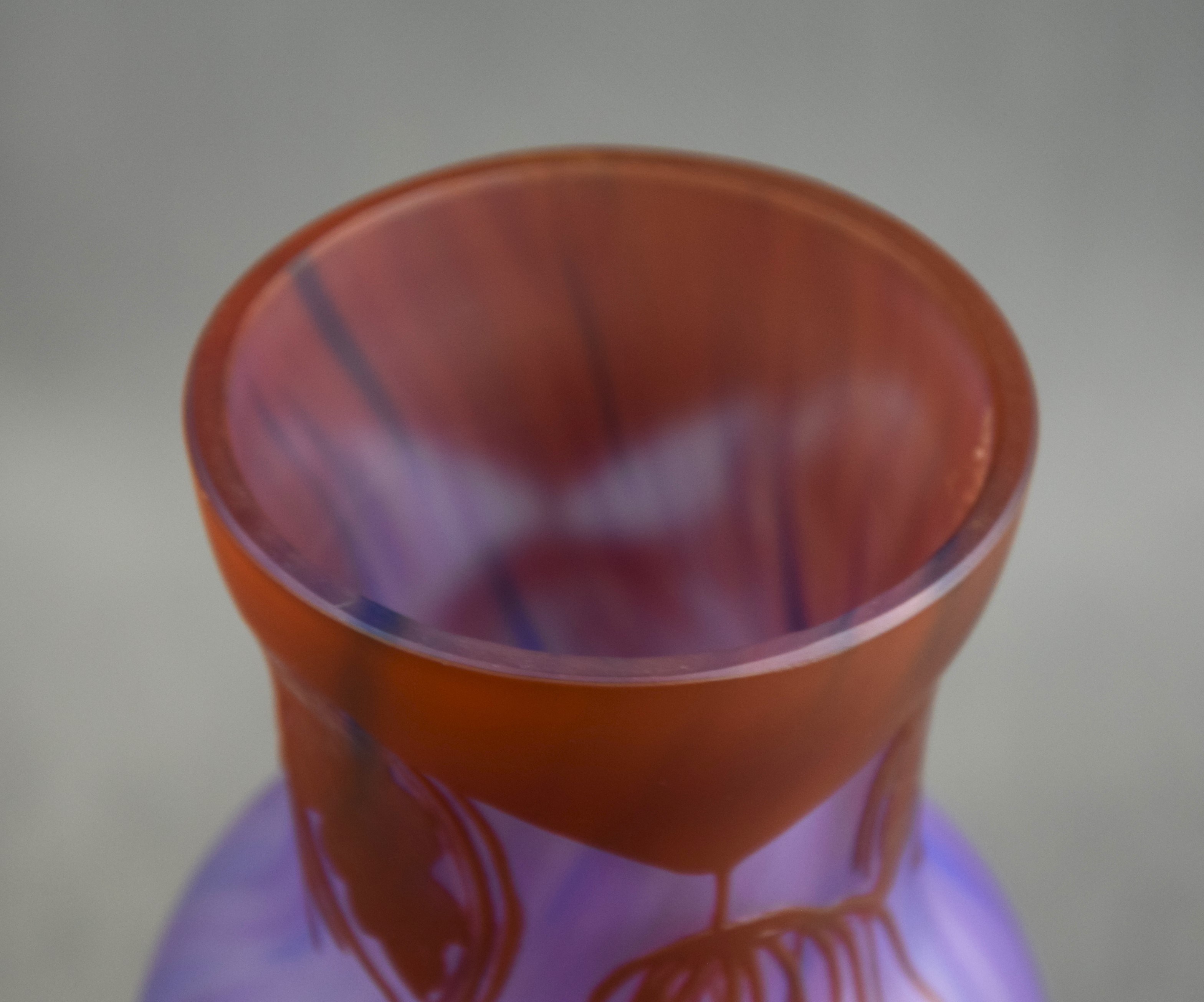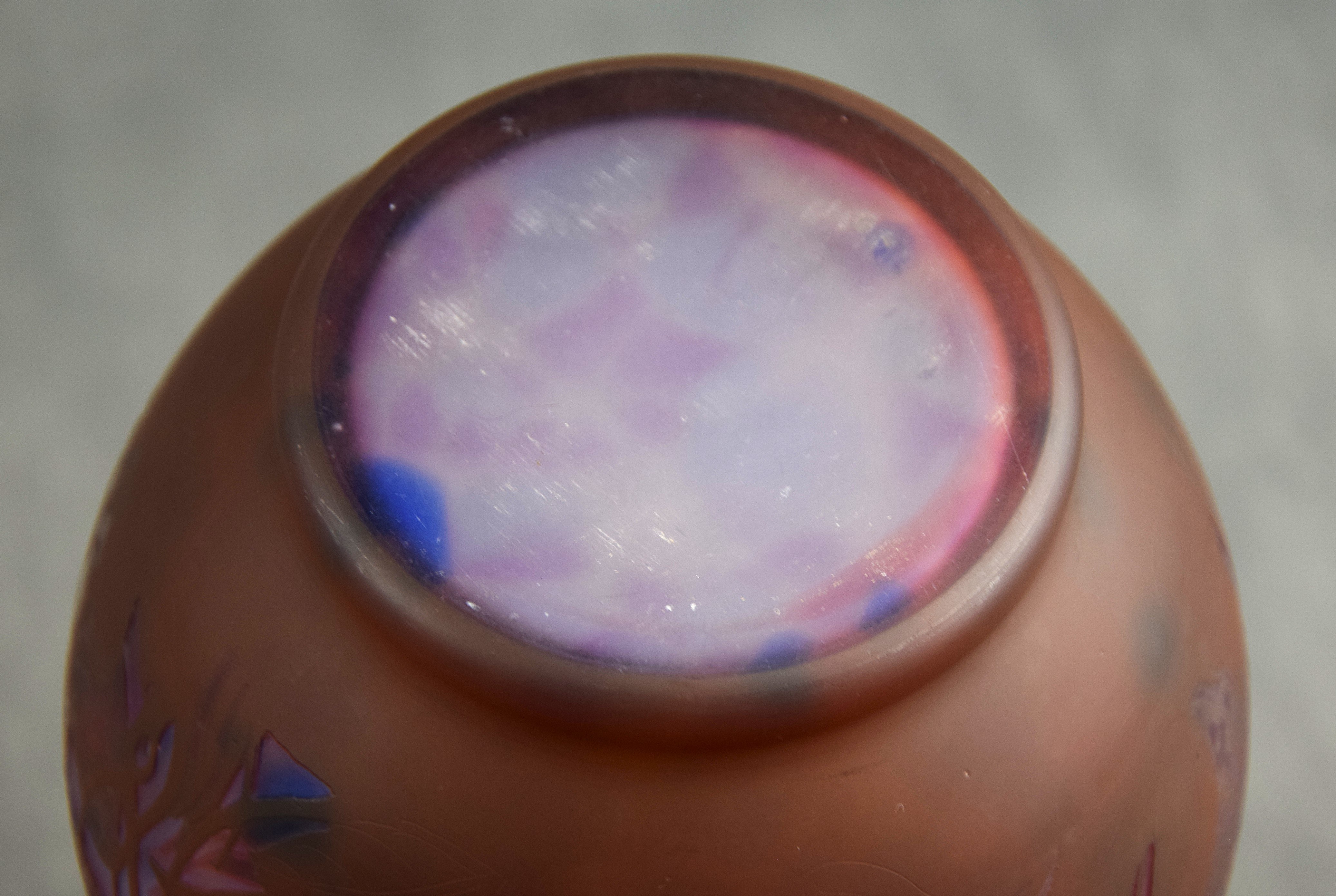 Szkło kameowe, warstwowe, trawione, barwione w masie.