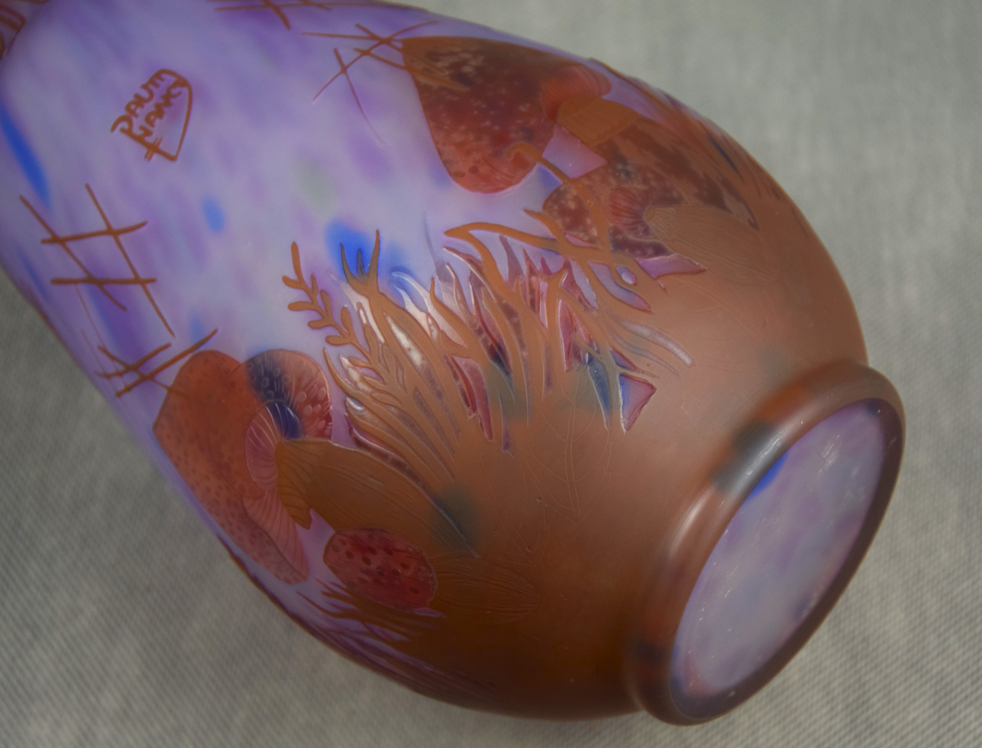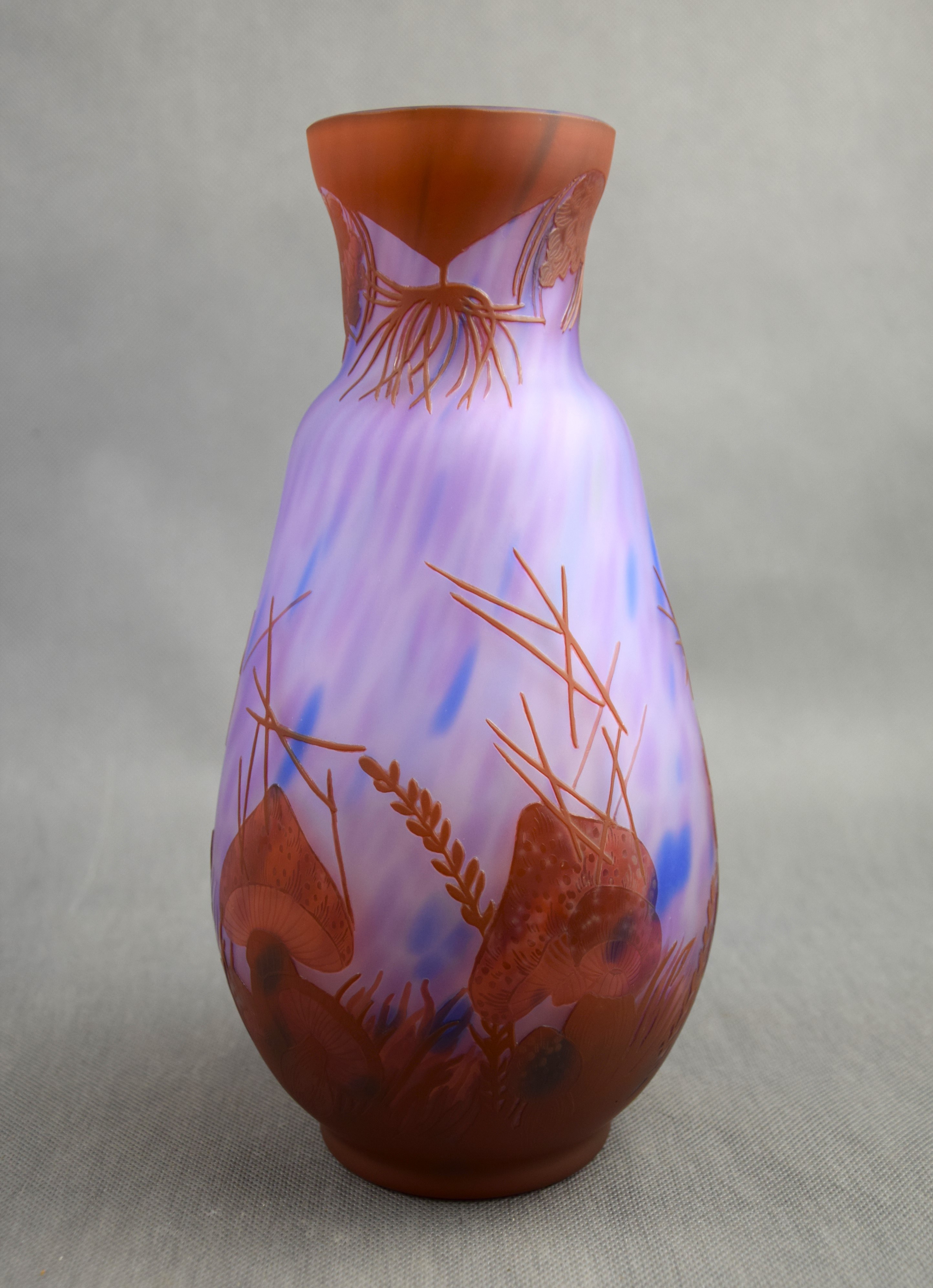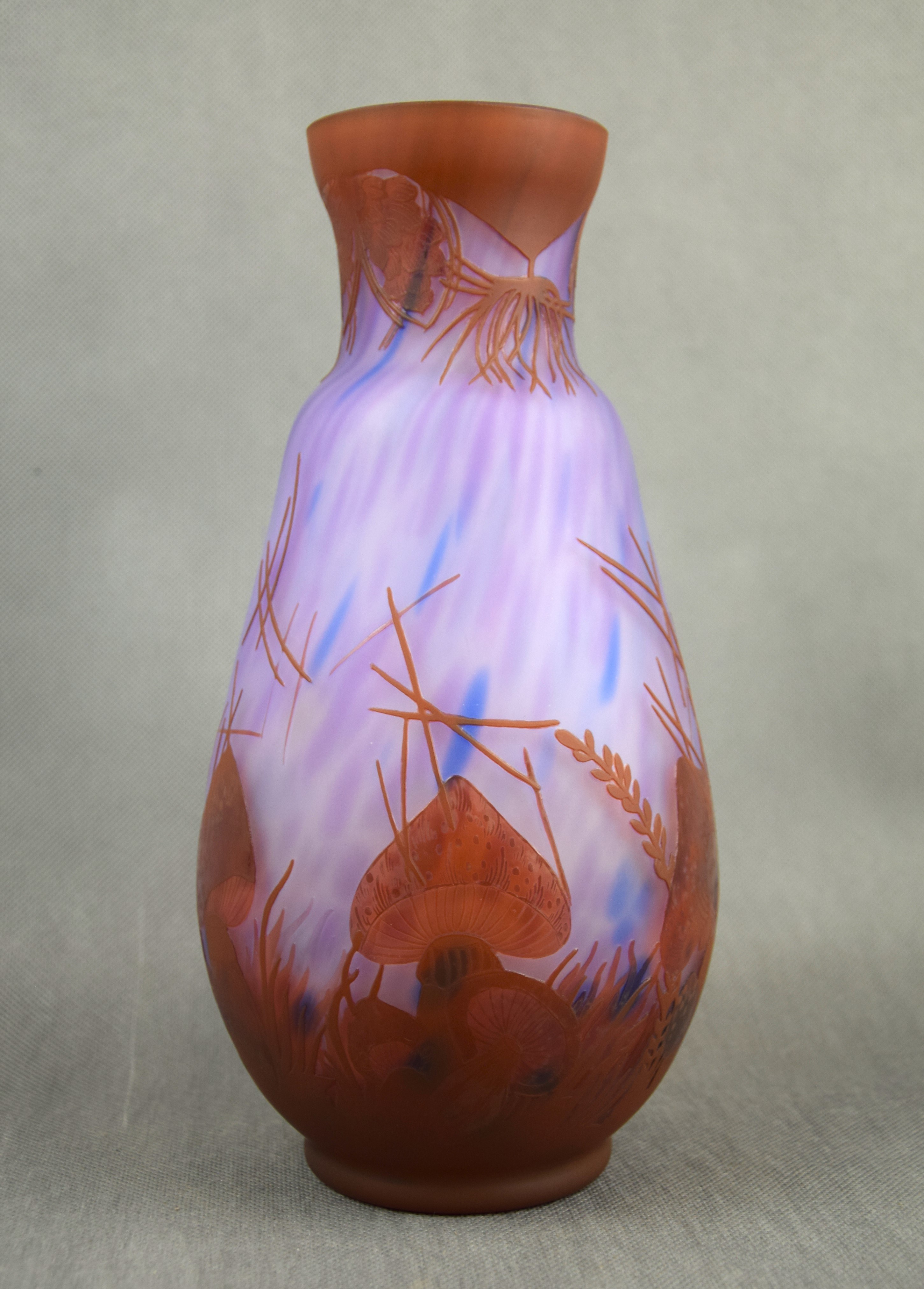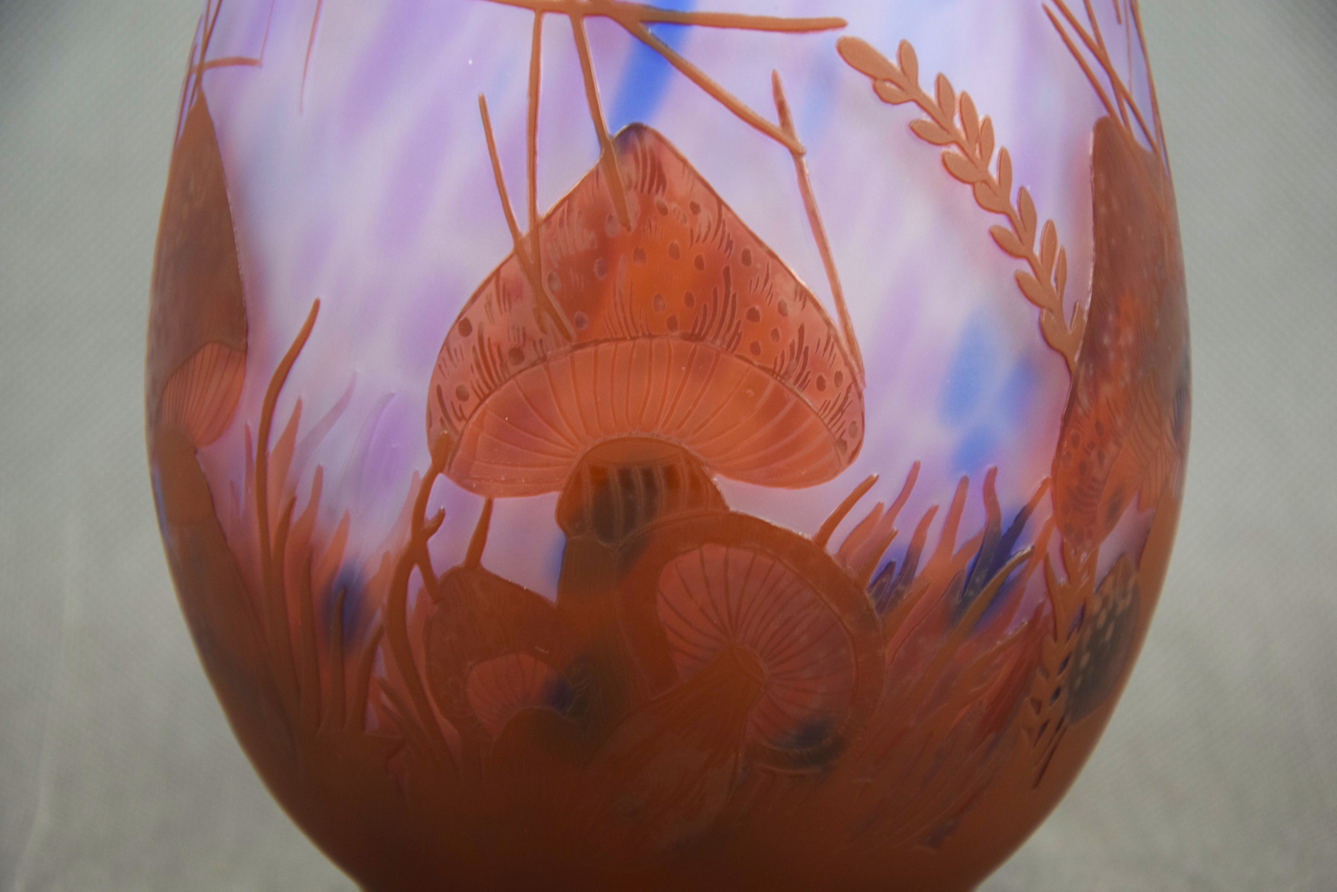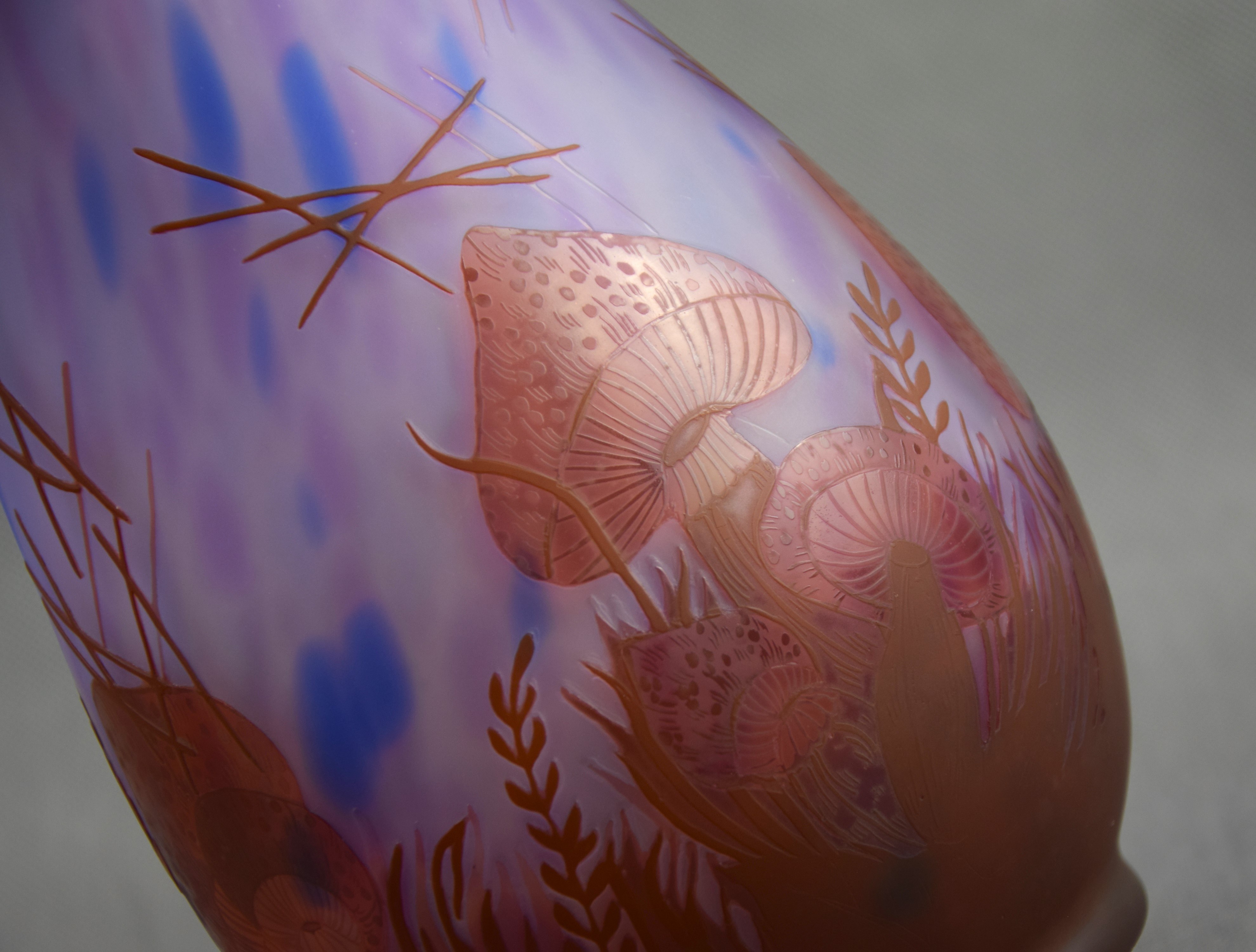 Szkło kameowe, warstwowe, trawione, barwione w masie.