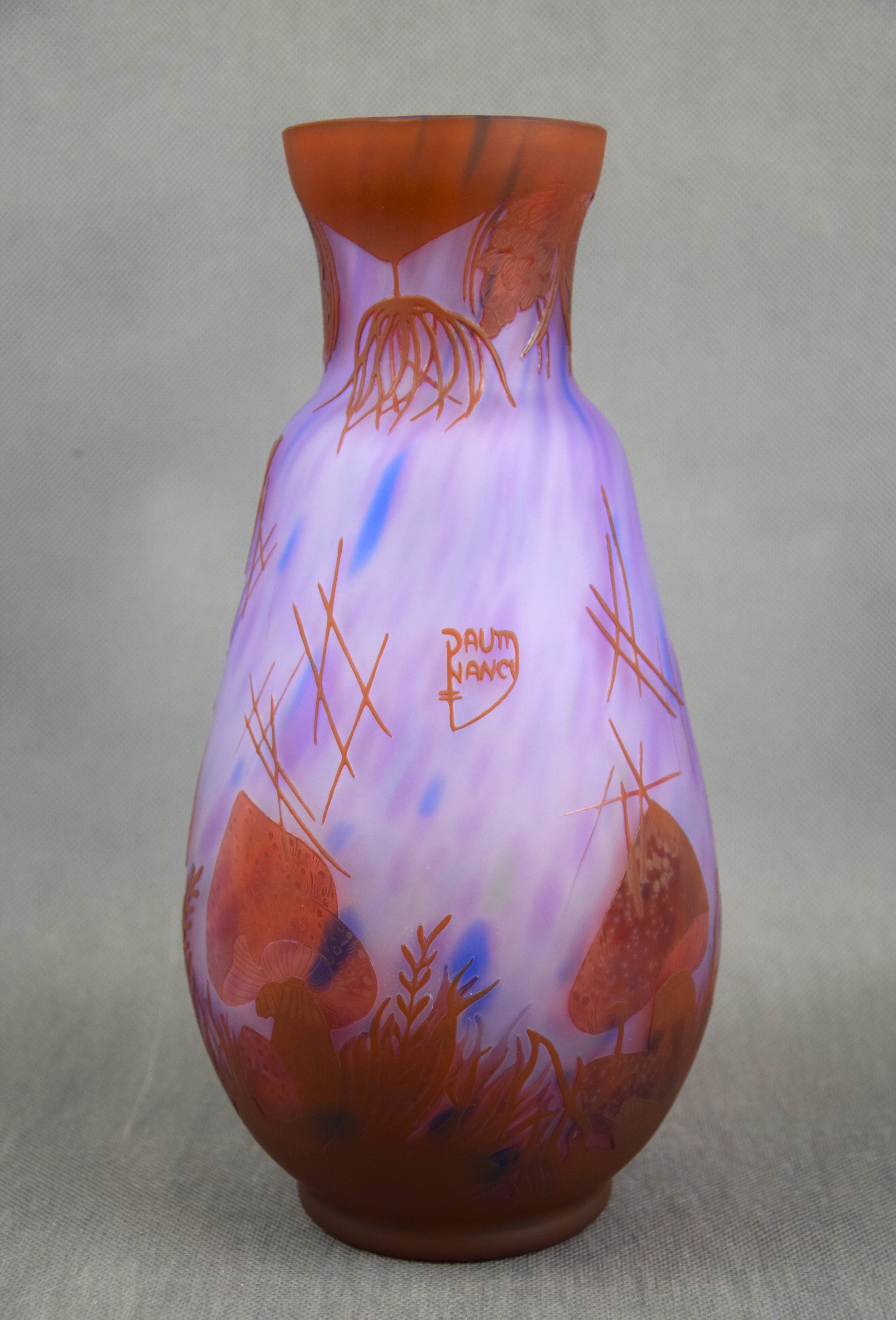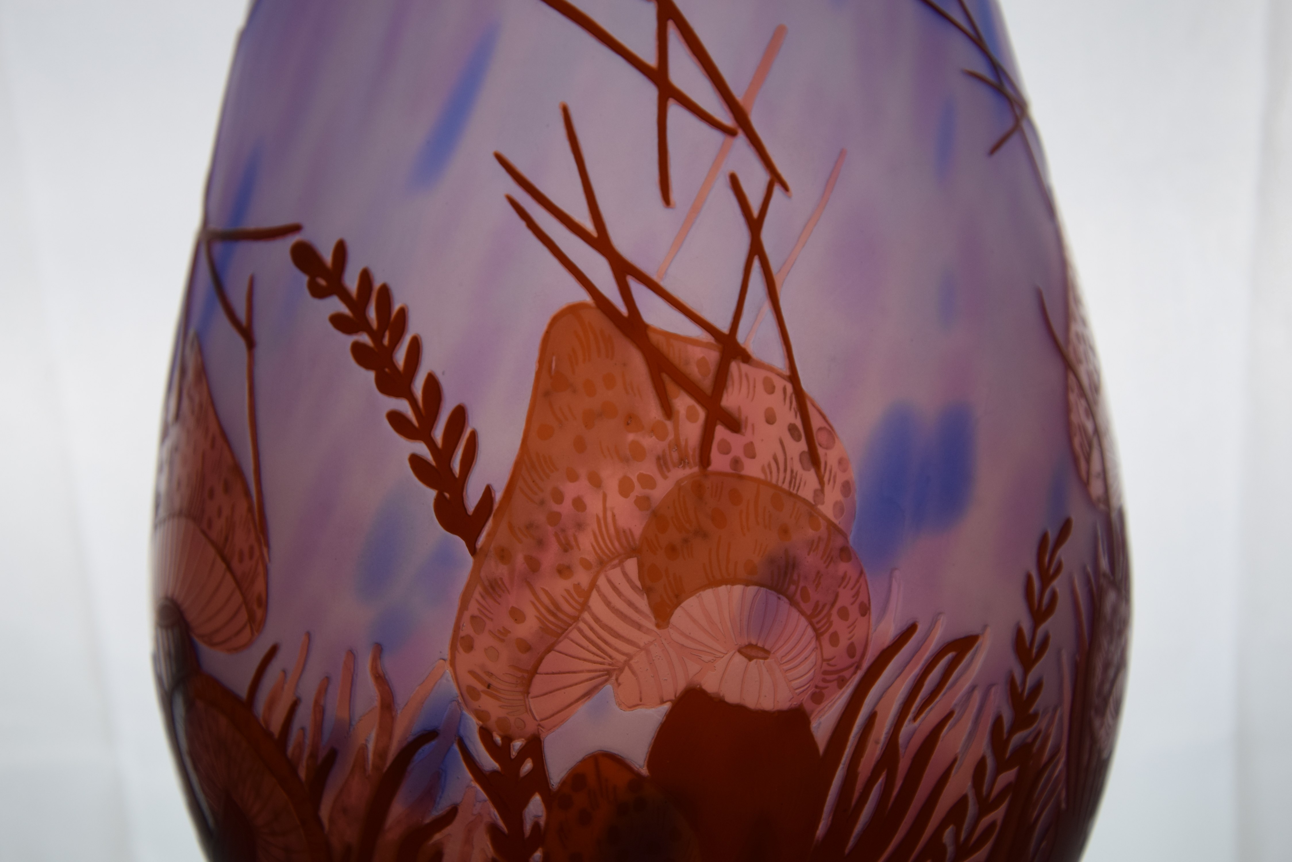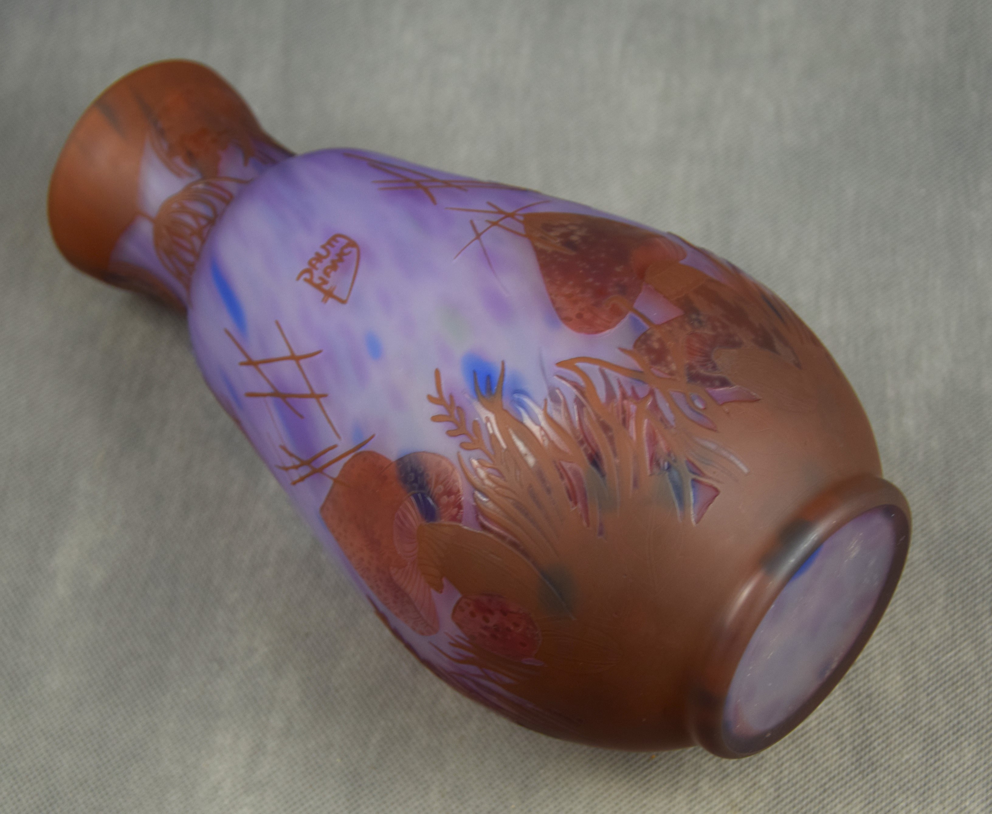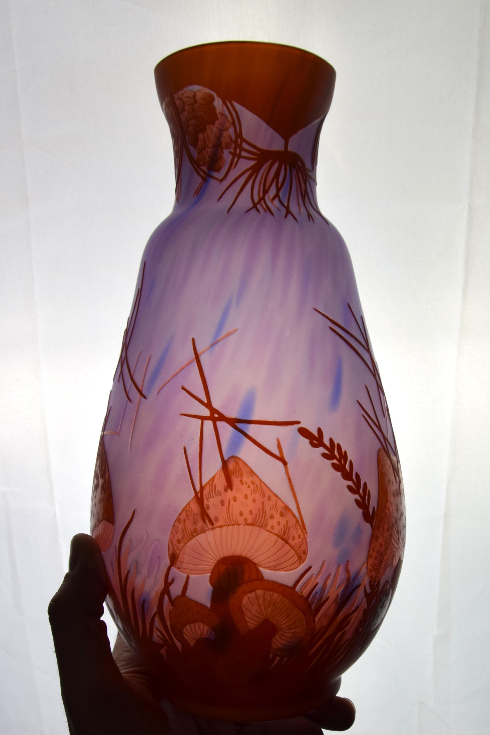 Szkło kameowe, warstwowe, trawione, barwione w masie.