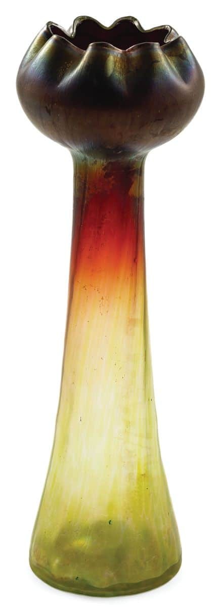 Szkło lazurowane opalizujące, czerwono-zielone, wys. 35,5 cm