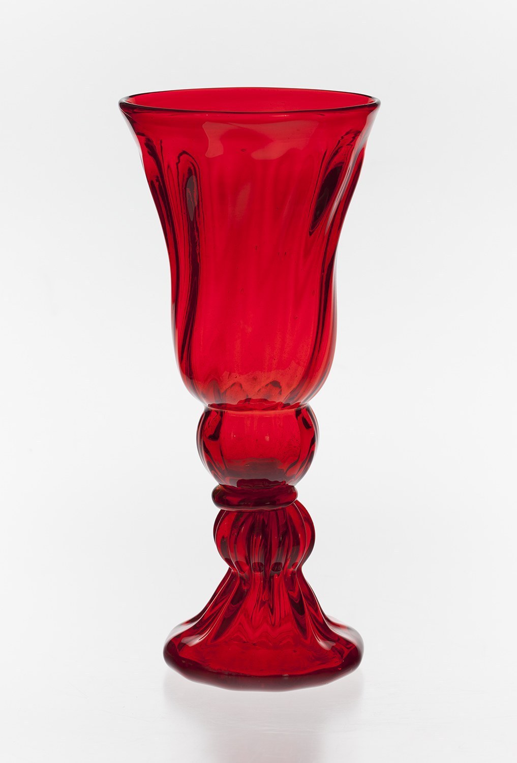 szkło barwione w masie, ręcznie formowane; wys. 28 cm