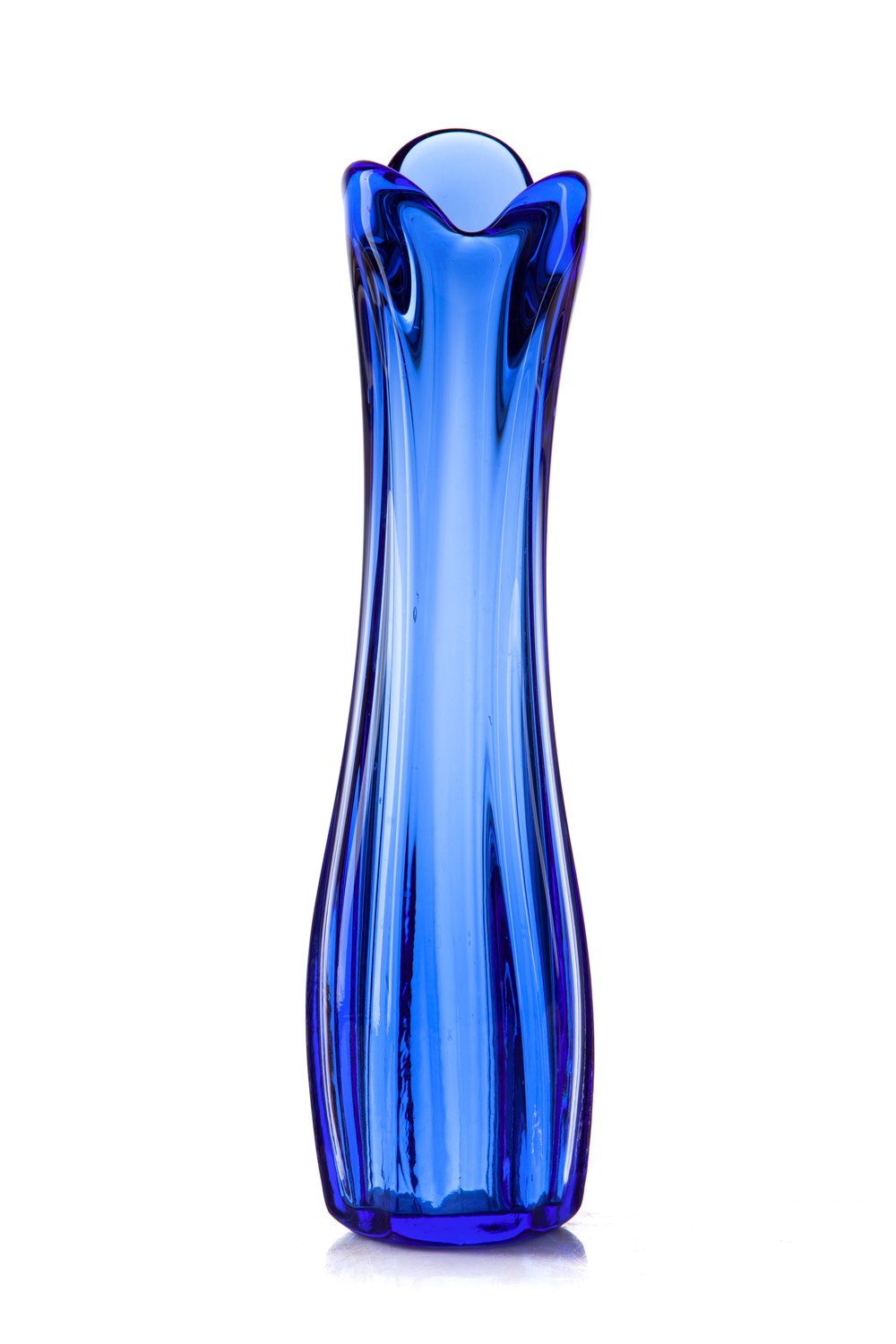szkło barwione w masie, prasowane i formowane ręcznie; wys.27,7 cm.