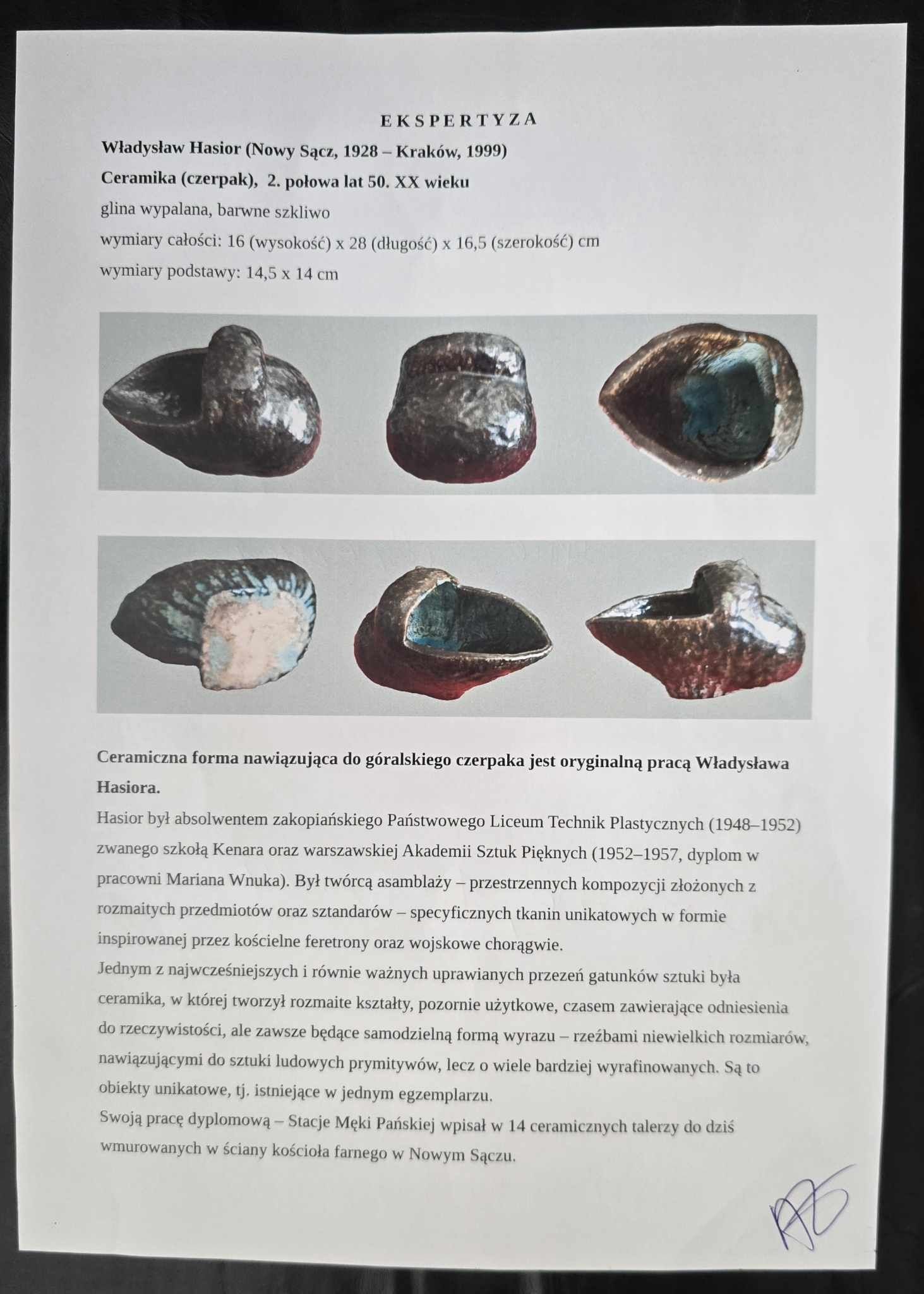 Władysław HASIOR, Forma ceramiczna "Czerpak", Zakopane, UNIKAT! AUKCJA CHARYTATYWNA