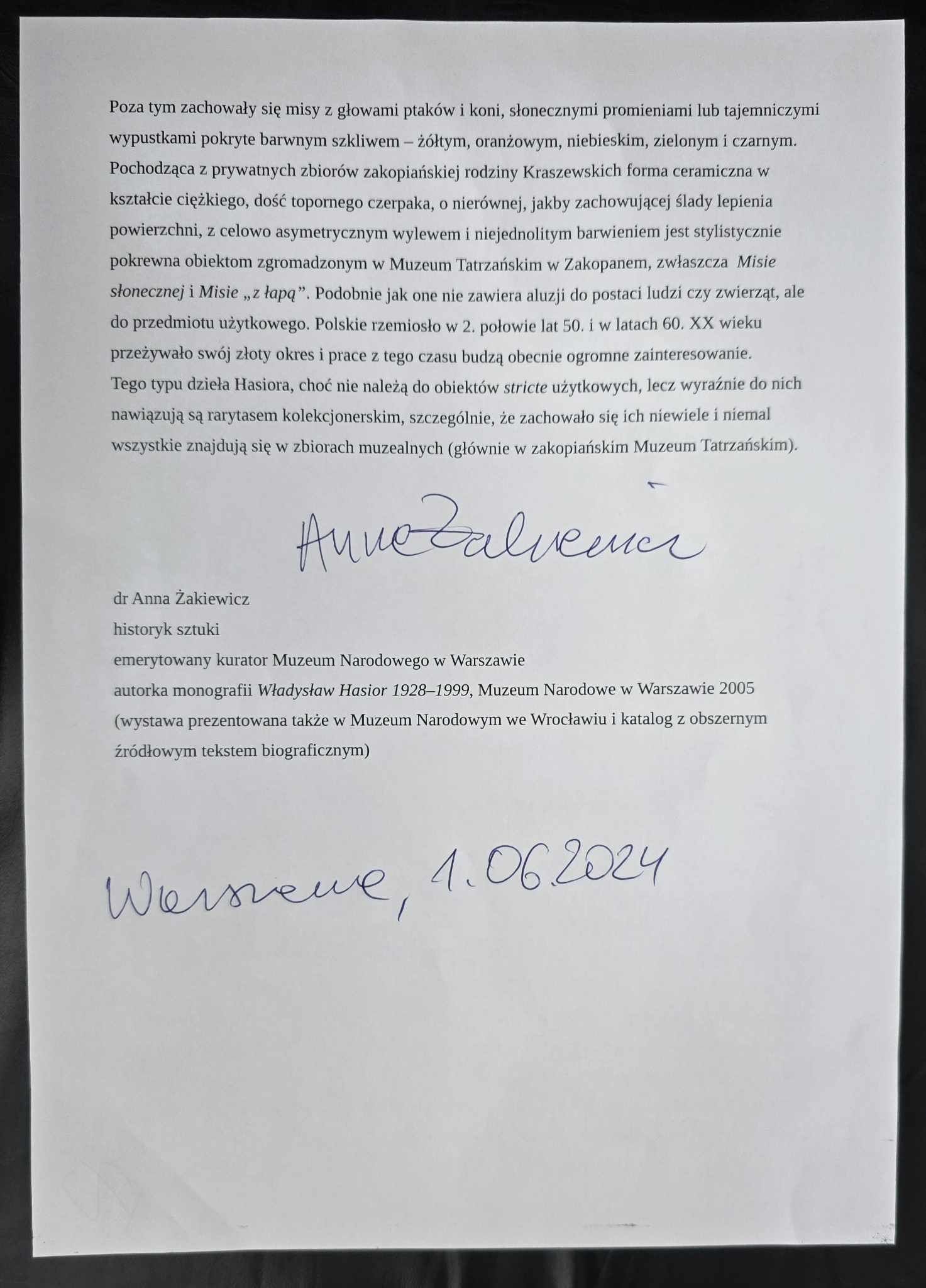 Do obiektu dołączona zostanie pisemna ekspertyza. Zdjęcie dokumentu pośród zdjęć obiektu do wglądu.