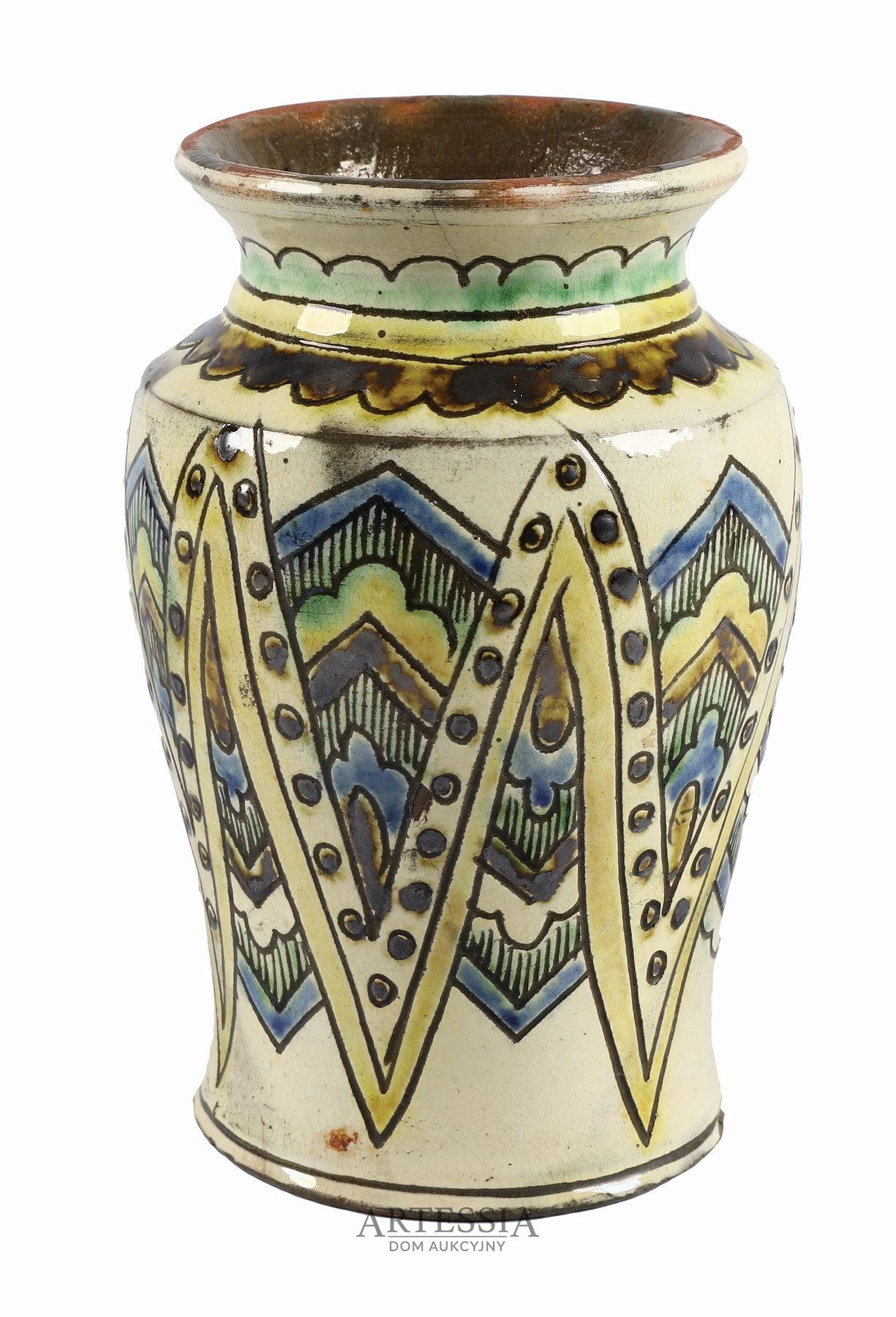 glina garncarska, pobiałka, farby ceramiczne, wys. 15 cm, śr. 10 cm; stan zach.: niewielki ubytek przy podstawie