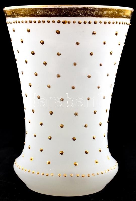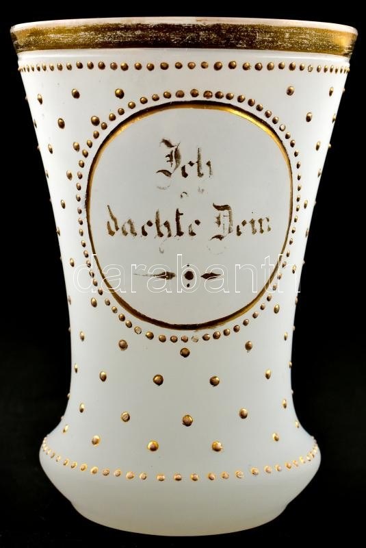 XIX. sz.:Ich dachte Dein - Rád gondoltam emlékpohár. Hutaüveg, kézzel festett, kis kopásokkal / Commemorative glass. hand painted, slightly worn. 12 cm