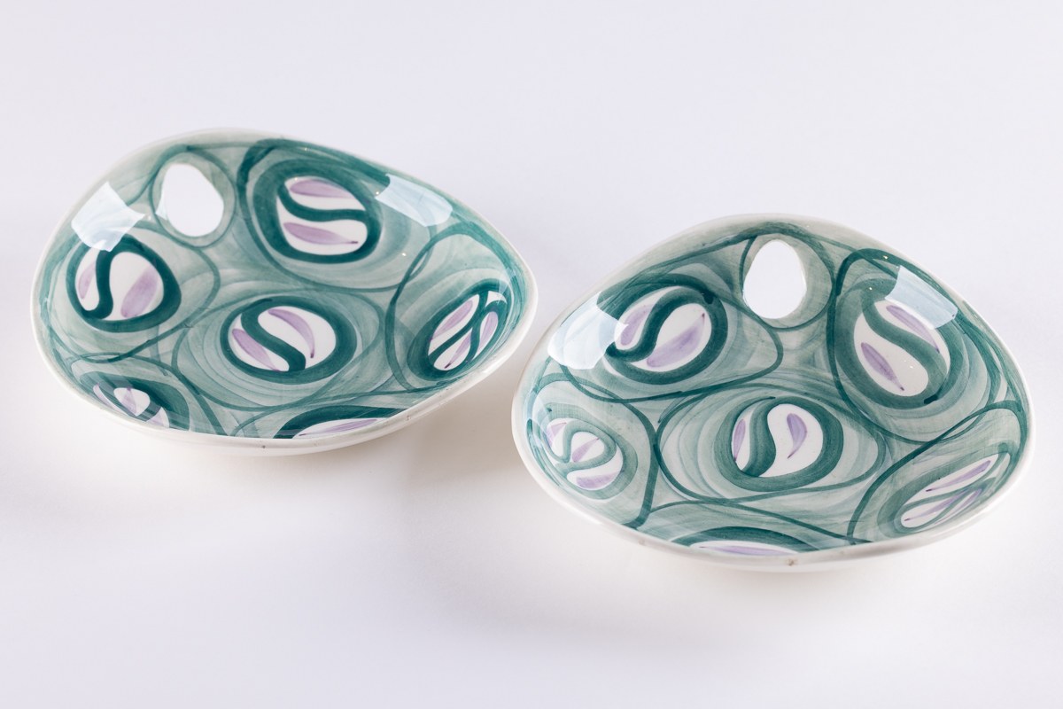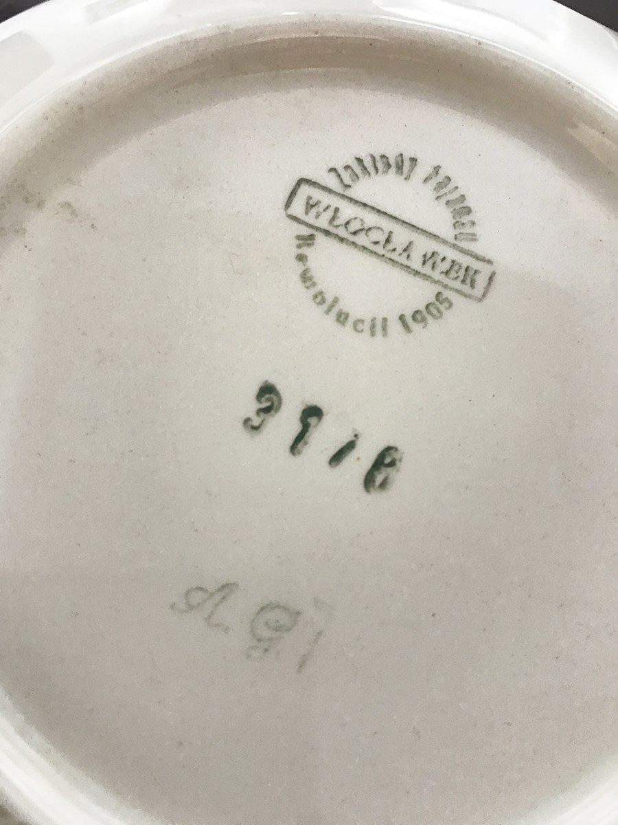 fajans szkliwiony, ręcznie malowany podszkliwnie, 4x17x18 cm, sygn. na spodzie pieczęcią wytwórni: Zakłady Fajansu WŁOCŁAWEK Rewolucji 1905, nr 3178 oraz inicjałami A.G.