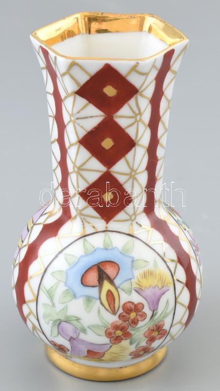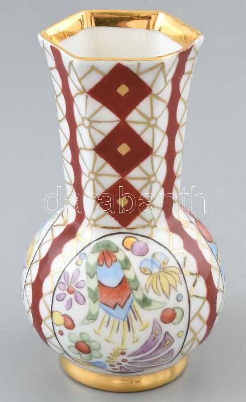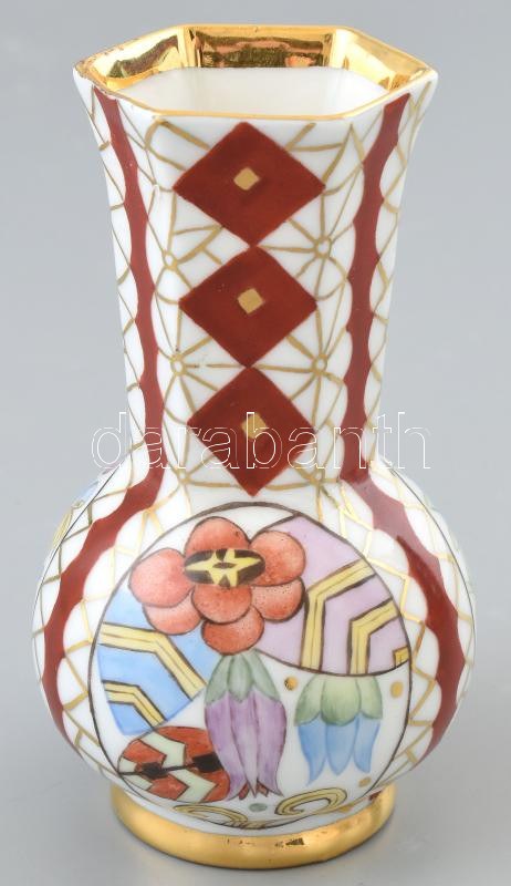 Zsolnay art deco festésű váza. Kézzel festett, jelzett, Mällner M. 1937. Kevés kopással. 14 cm