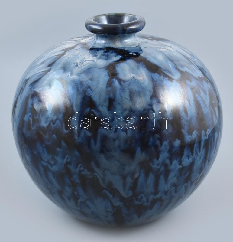 Zsolnay díszváza, kristálymázas porcelánfajansz, körpecséttel jelzett, hibátlan, 1900 körül, m: 30cm, d: 30 cm