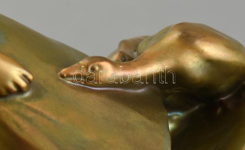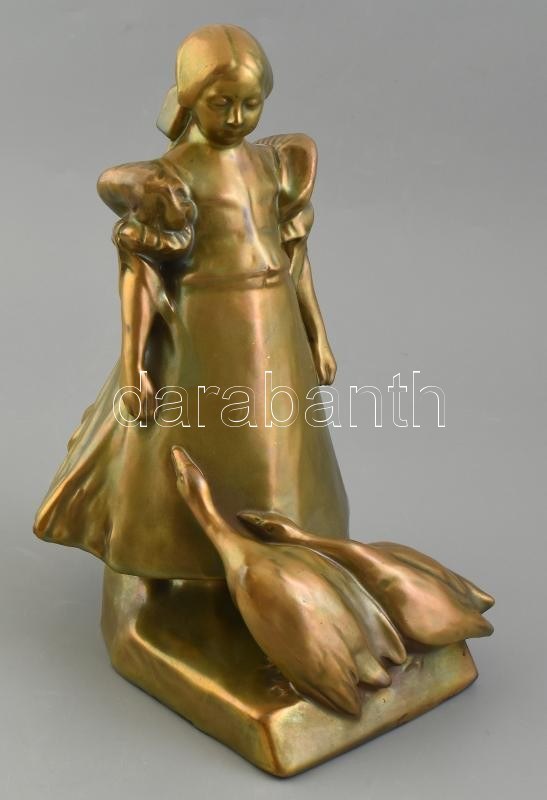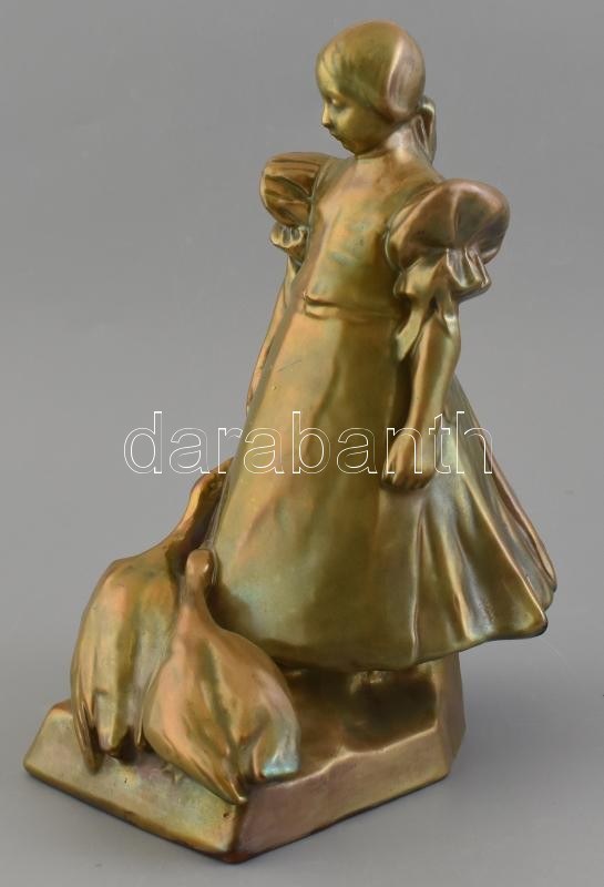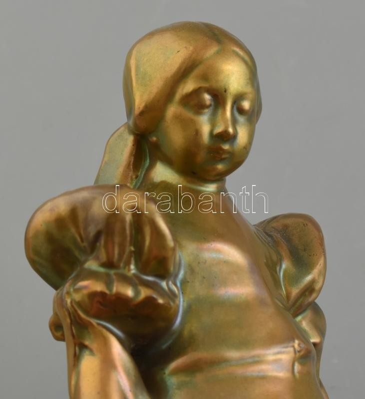 Zsolnay: Libás lány. Eozin mázas porcelánfajansz, jelzett, 1920 körül, hibátlan, m: 27 cm