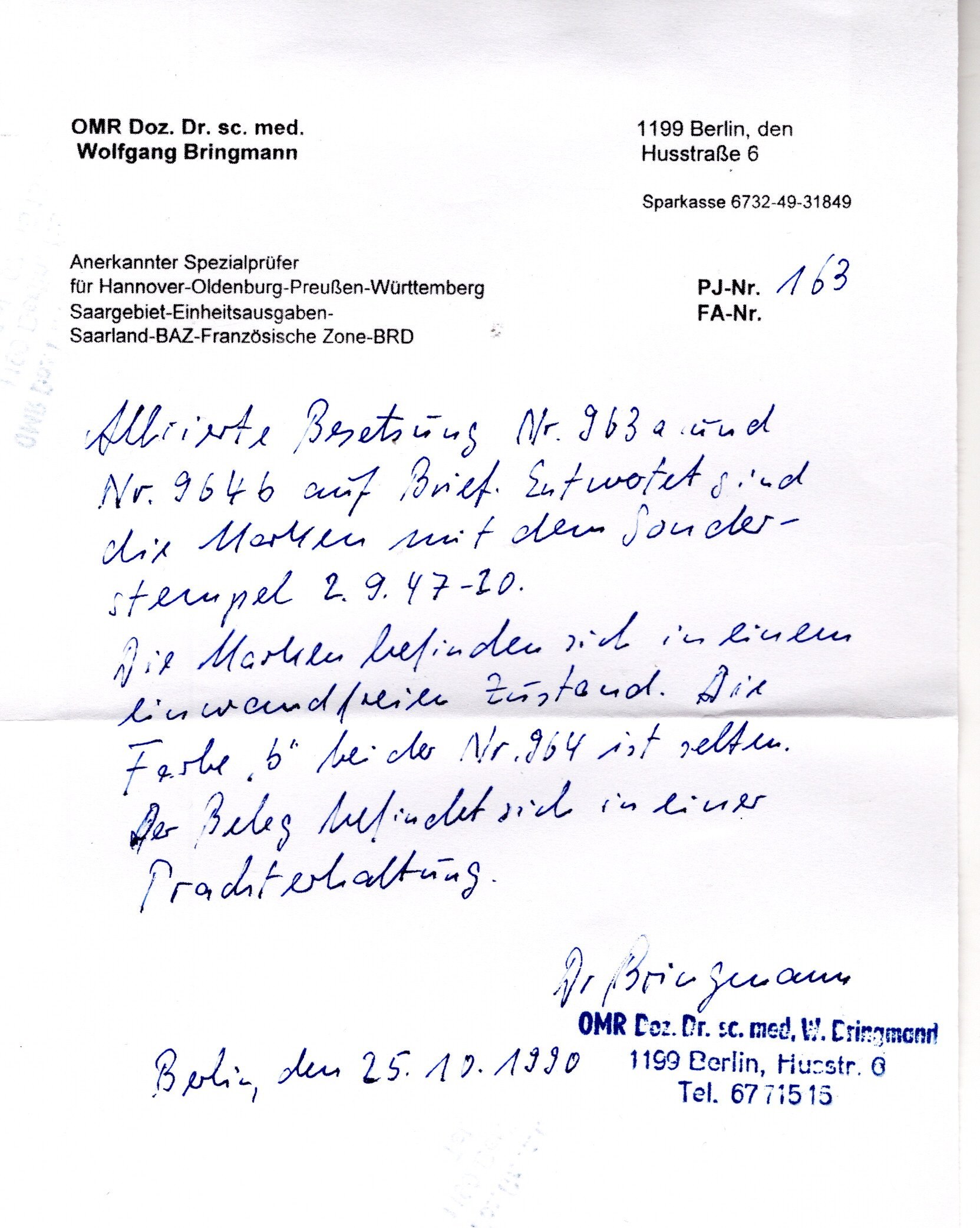 Neben 963a in MiF auf Blanko-Umschlag, Attest Dr.Bringmann, dazu 964a in MiF auf Not-R- Brief zum Vergleich, Mi. f. gestempelt 550.-