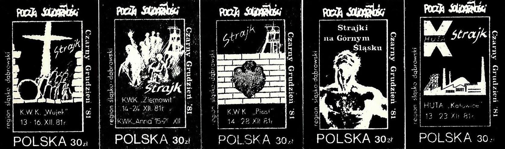 Zestaw pięciu znaczków z lat 80. Strajki na Górnym Śląsku