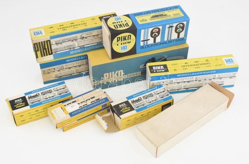 10 doboz Piko modell vasúti kocsi és modellvasút kiegészítő, eredeti dobozában, jó darabokkal.
