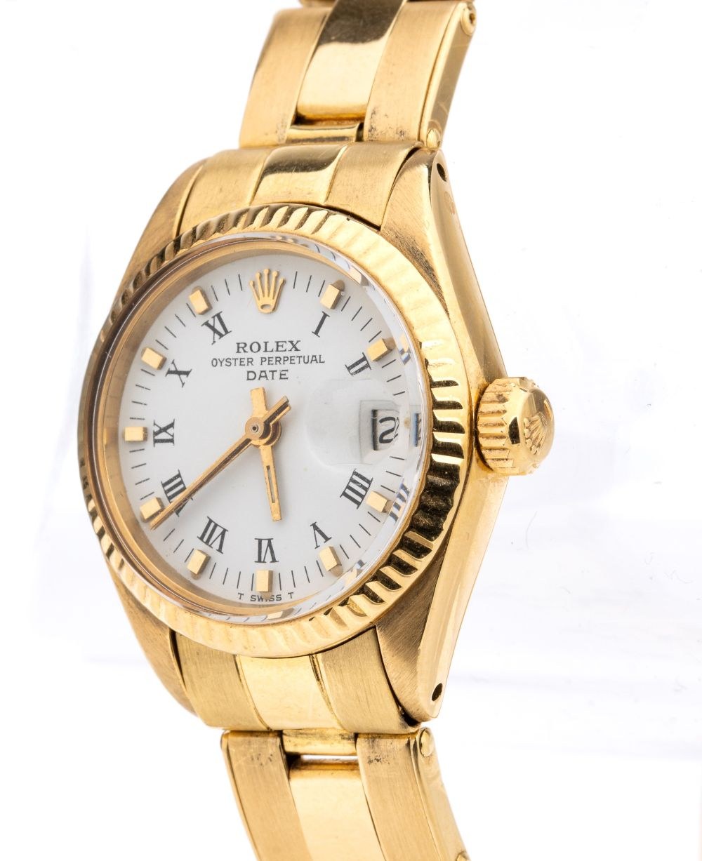 18k yellow gold case and bracelet, white dial with golden index and roman numerals. Automatic mechanical movement. Reference 6917, serial n. 3835104.