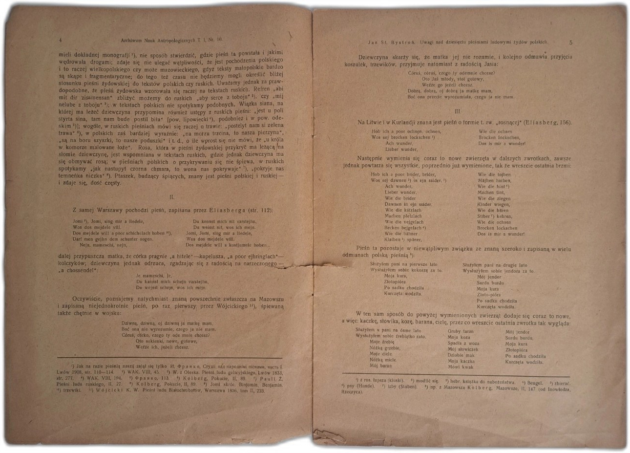 Uwagi nad dziesięciu pieśniami ludowymi żydów polskich Jan Stanisław Bystroń