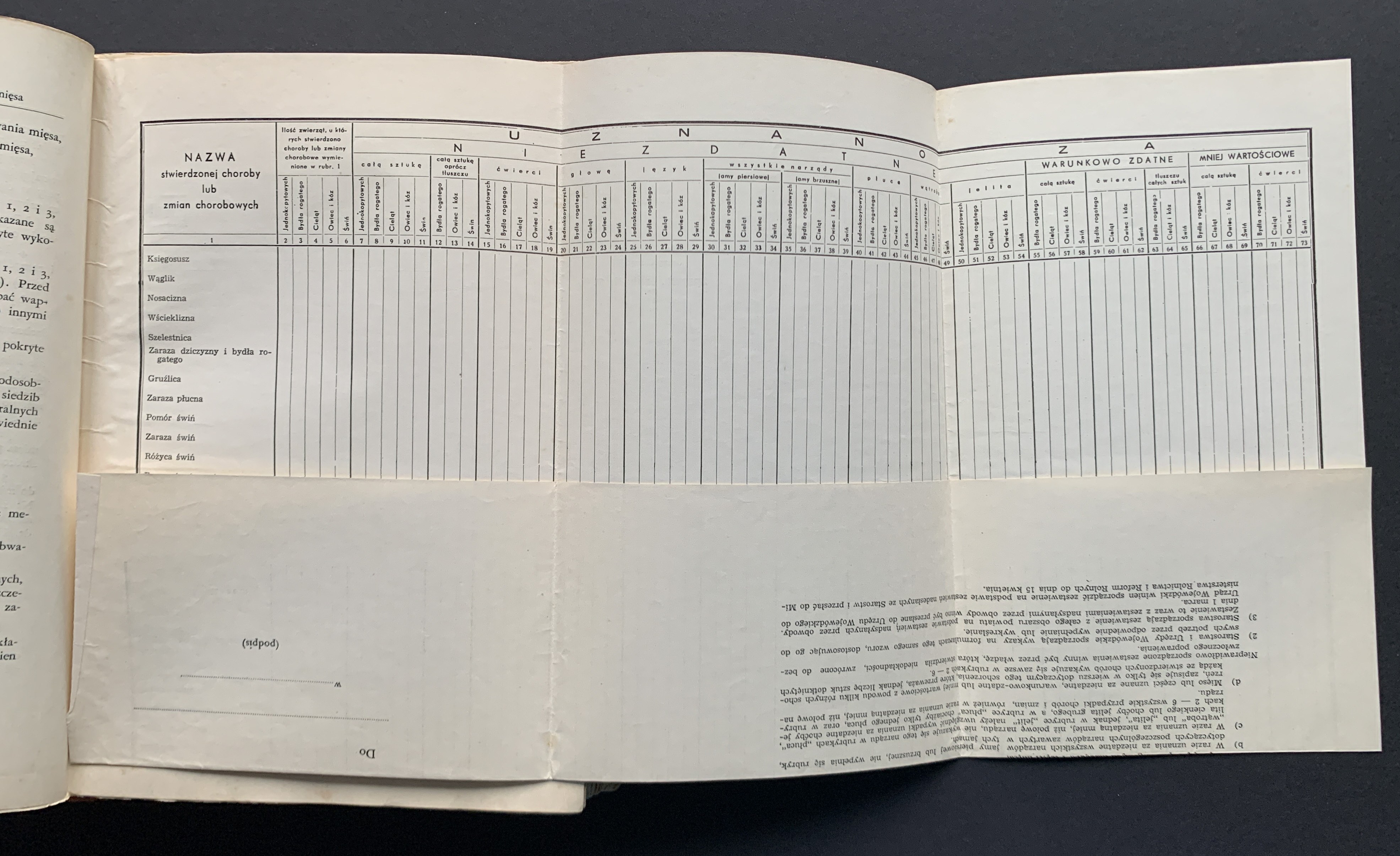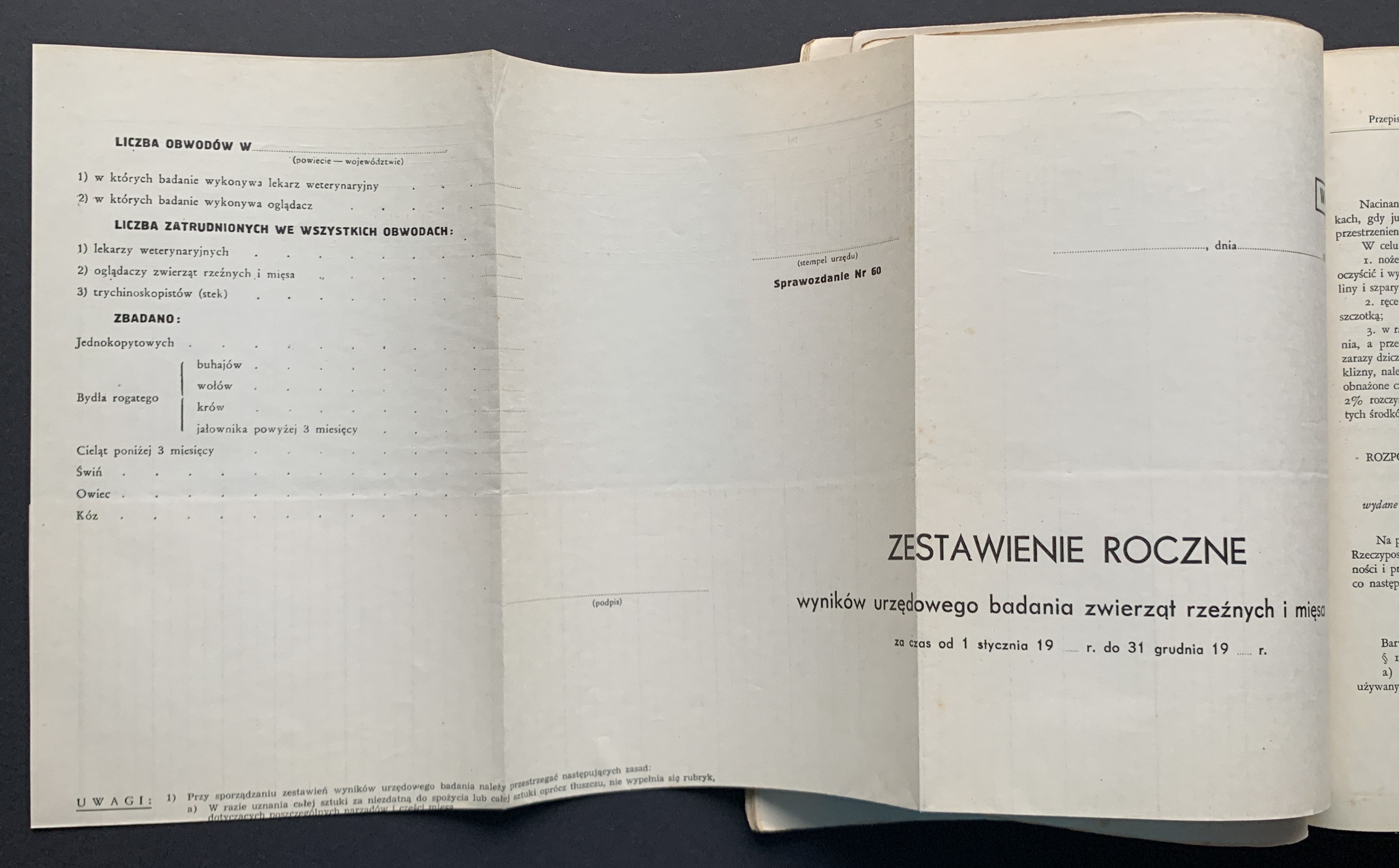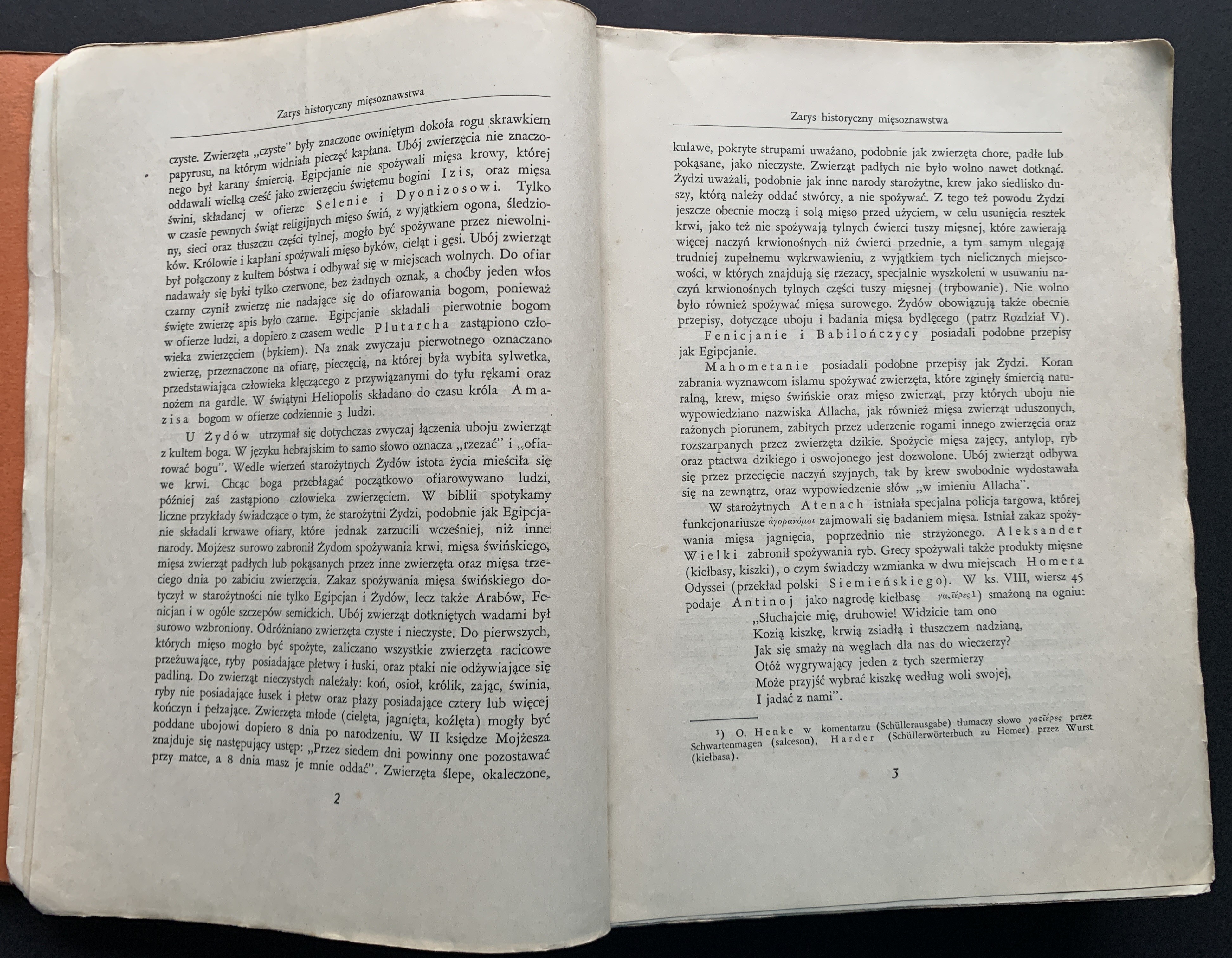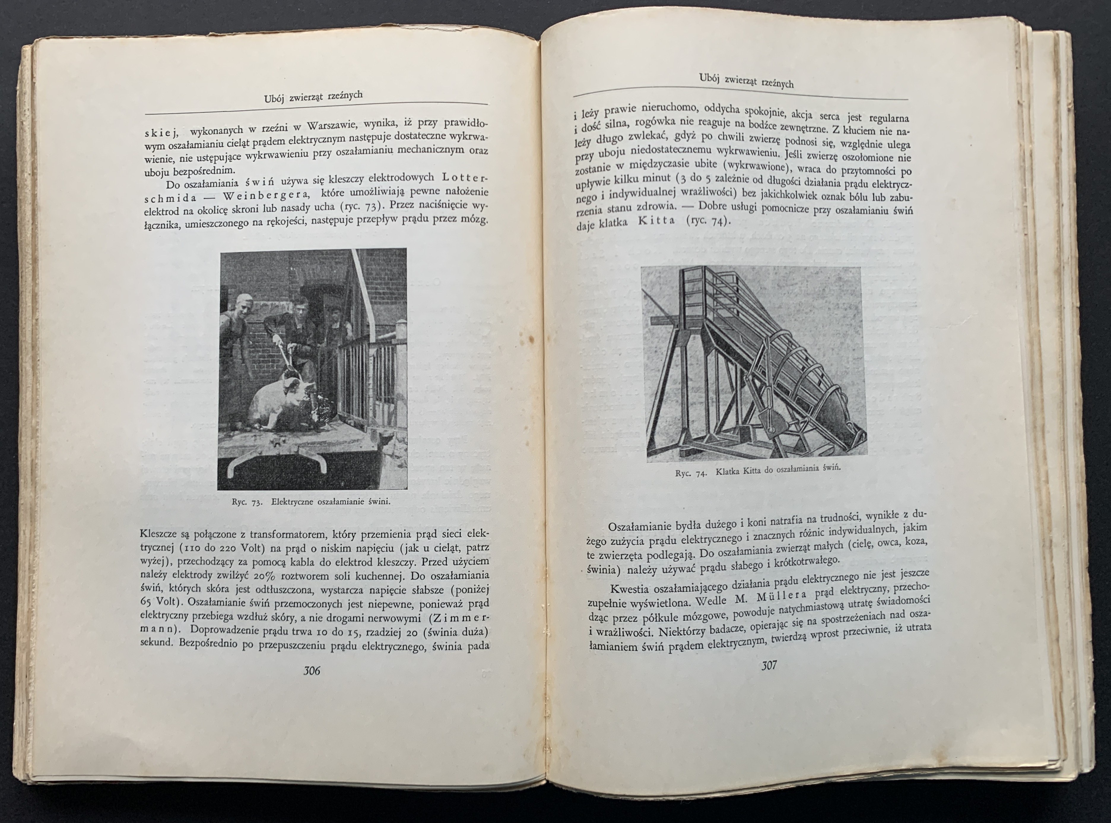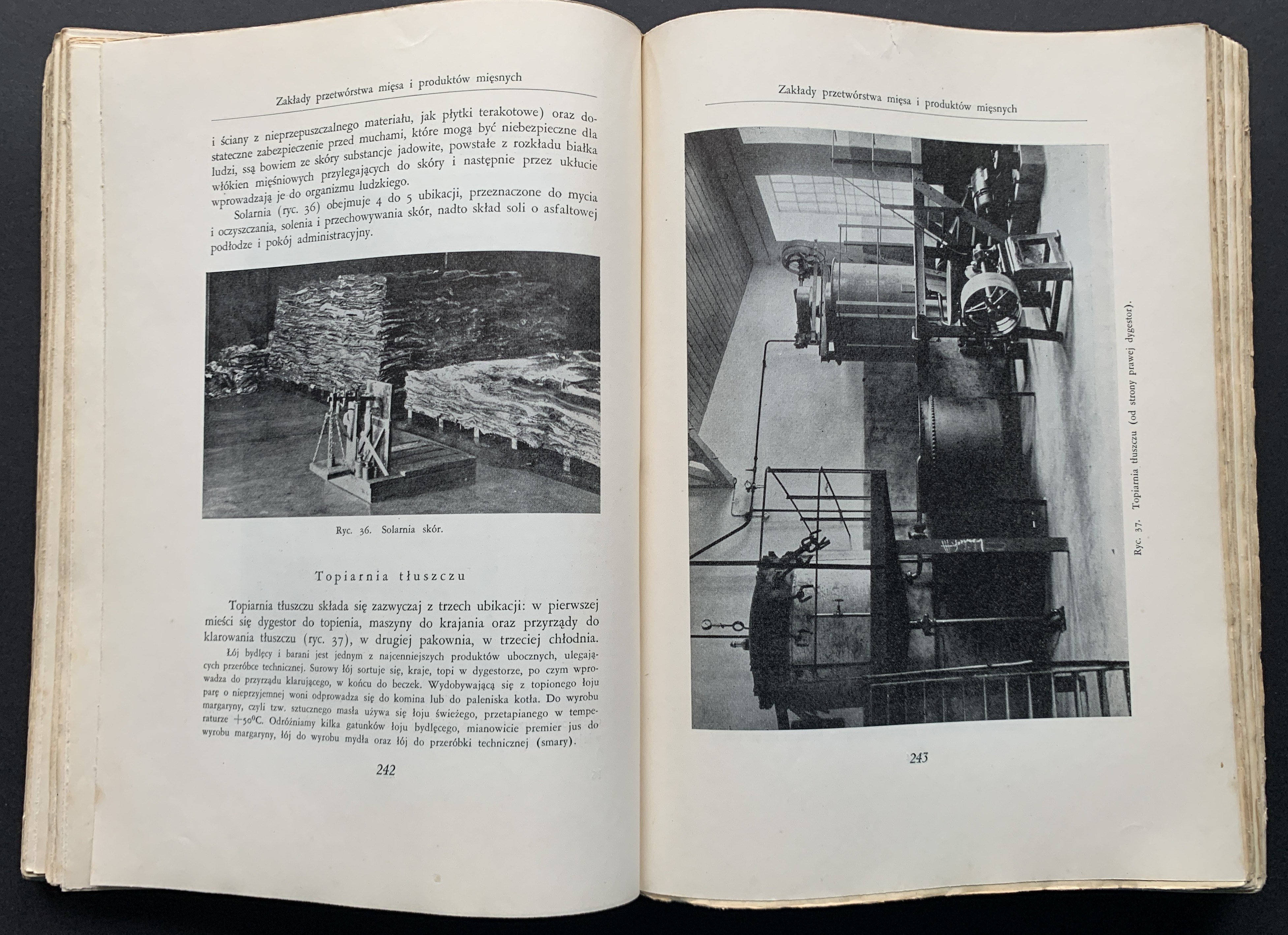 Obszerny PODRĘCZNIK, bogaty w ilustracje, zawierający rozdziały m.in.: Zarys historyczny mięsoznawstwa. Przepisy dotyczące urzędowego badania zwierząt rzeźnych i mięsa na terenie R.P. Ubój zwierząt rzeźnych. Choroby zakaźne zwierząt rzeźnych. Produkty mięsne. Konserwacja mięsa i produktów mięsnych. Drób, króliki, dziczyzna. Skorupiaki, mięczaki, gady, płazy. Salmonella. Schorzenia po spożyciu mięsa i produktów mięsnych zakażonych pasożytami roślinnymi i zwierzęcymi.