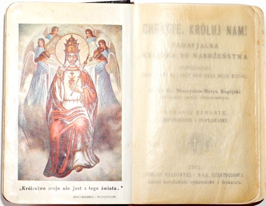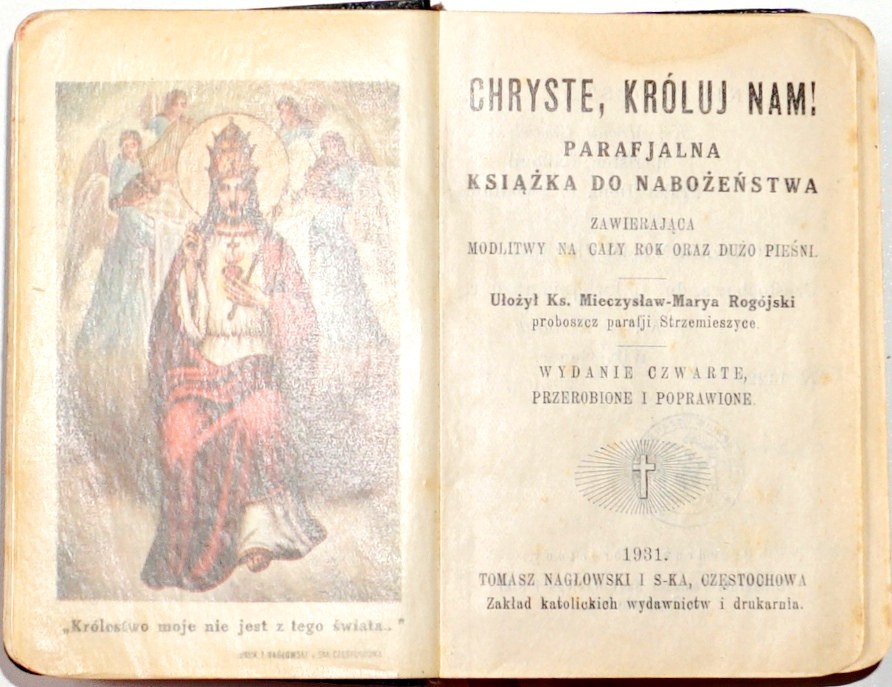 Chryste, króluj nam! : parafjalna książka do nabożeństwa zawierająca modlitwy na cały rok oraz dużo pieśni / ułożył Mieczysław-Marya Rogójski.