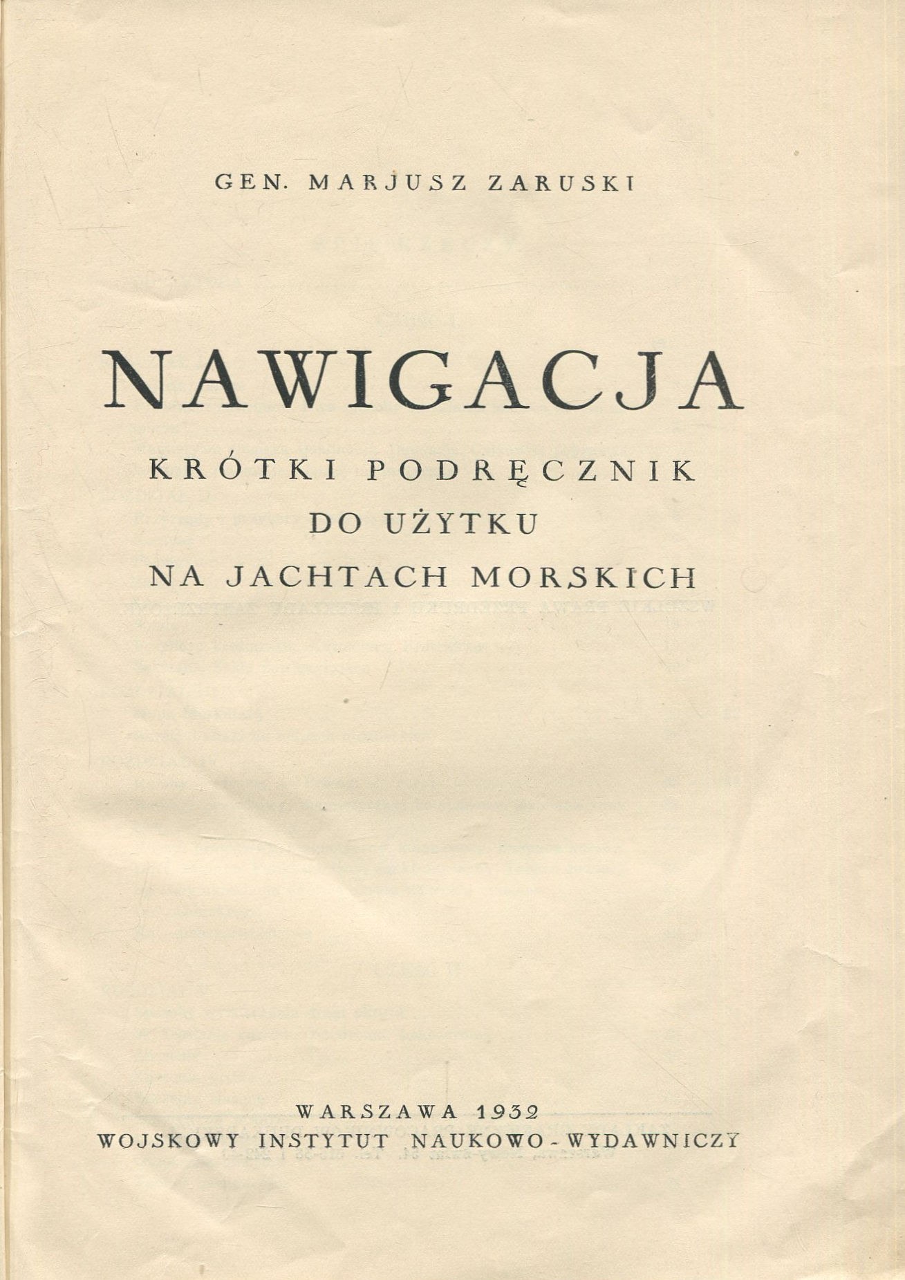 Warszawa 1932. Wojskowy Instytut Naukowo-Wydawniczy. 17,5x24 cm, str. VIII, 128, czarno-białe ilustracje w tekście, rozkładana mapa i zamiennik rumbów (papierowy krążek) w kieszeni na końcu książki, 1 kolorowa rozkładana tablica, oryginalna okładka naklejona na karton. Stan dobry.