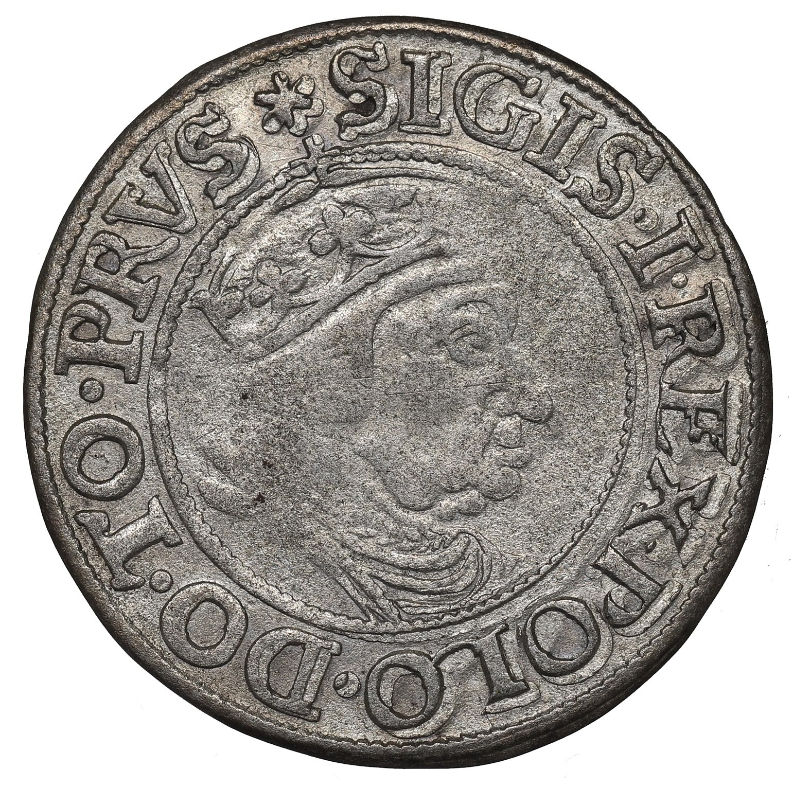 Rewers: w otoku perełkowym popiersie królewskie w zbroi i koronie, w prawo, w otoku zewnętrznym legenda rozpoczęta od gwiazdki: