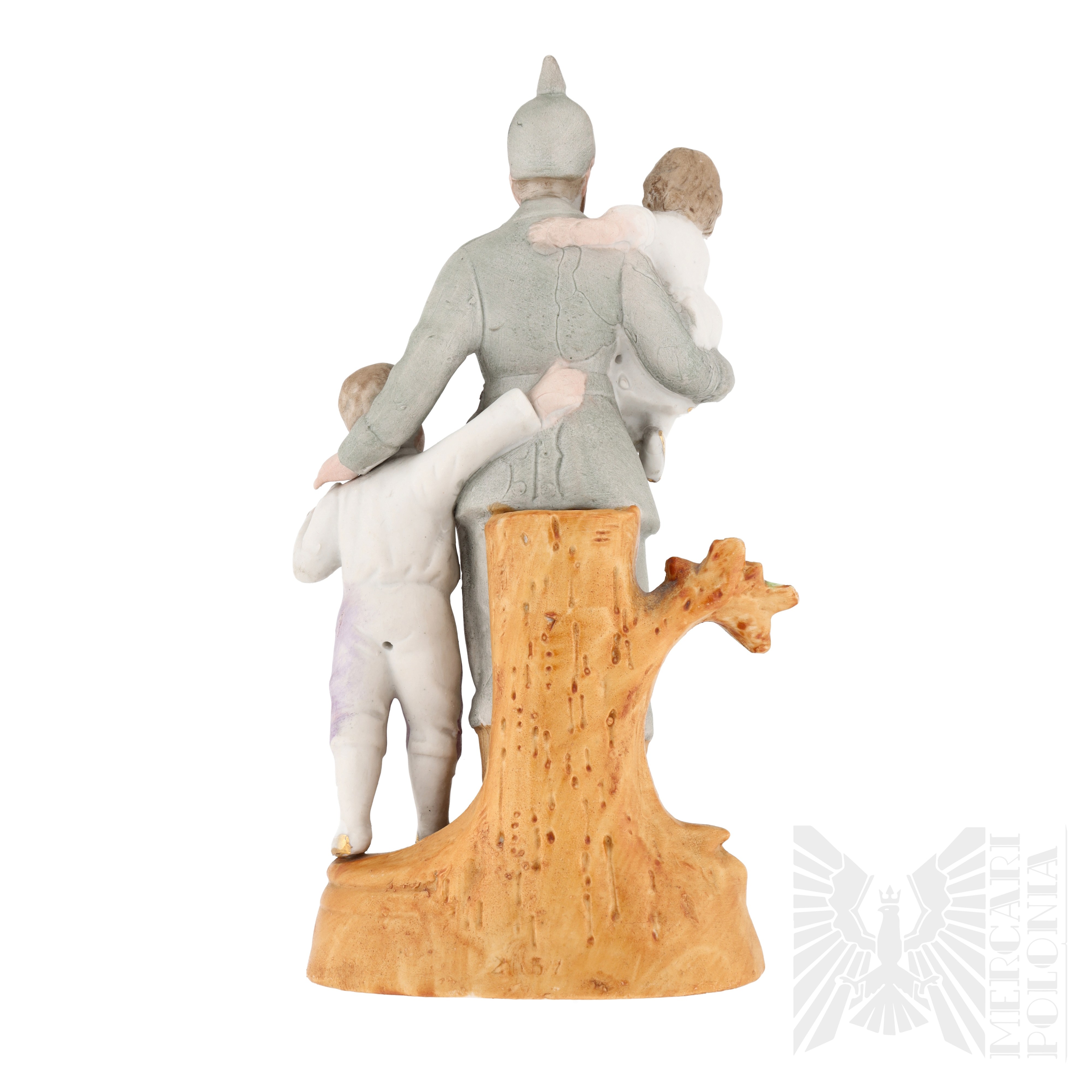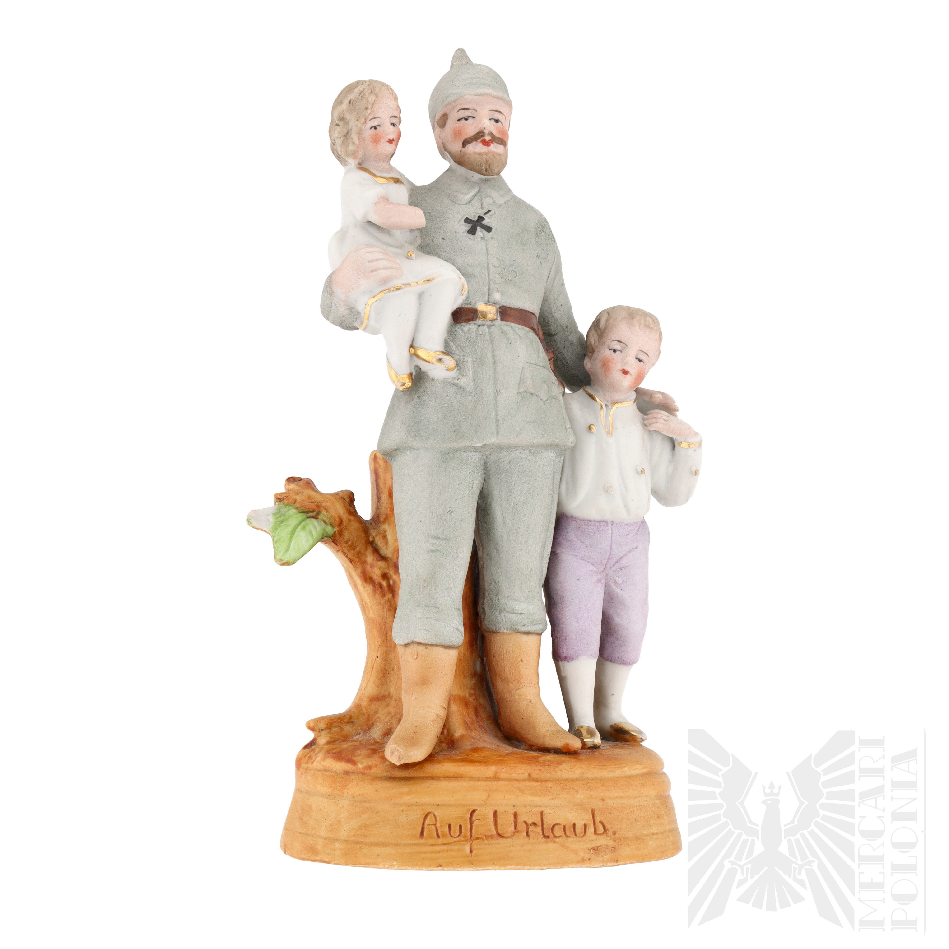 Figurka żołnierza Armii Niemieckiej z okresu 1 wojny światowej. Dobrze oddane detale umundurowania i zachowane oryginalne malowanie. Na dole napis „Auf Urlaub” (niem. „Na urlopie” lub „Na przepustce”).