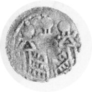 Denar, popiersie w koronie/ Kościół, Kop.27c R4