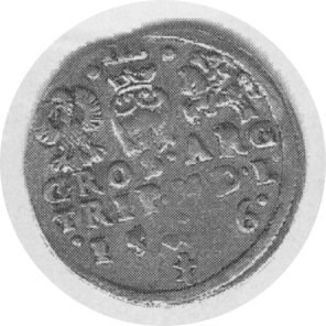 Trojak 1596, h.Chalecki niżej h.Prus, jak. Kop.229.111.4 r, ale brak cyfry 9 w dacie, nienotowany
