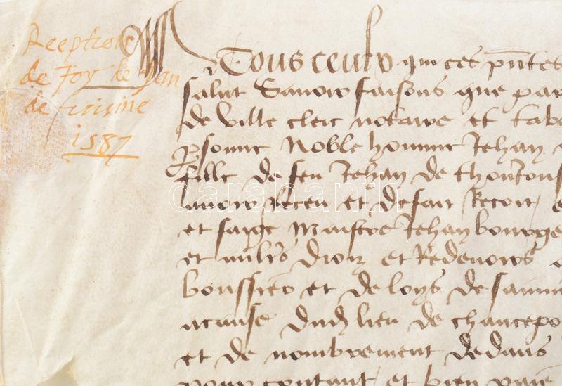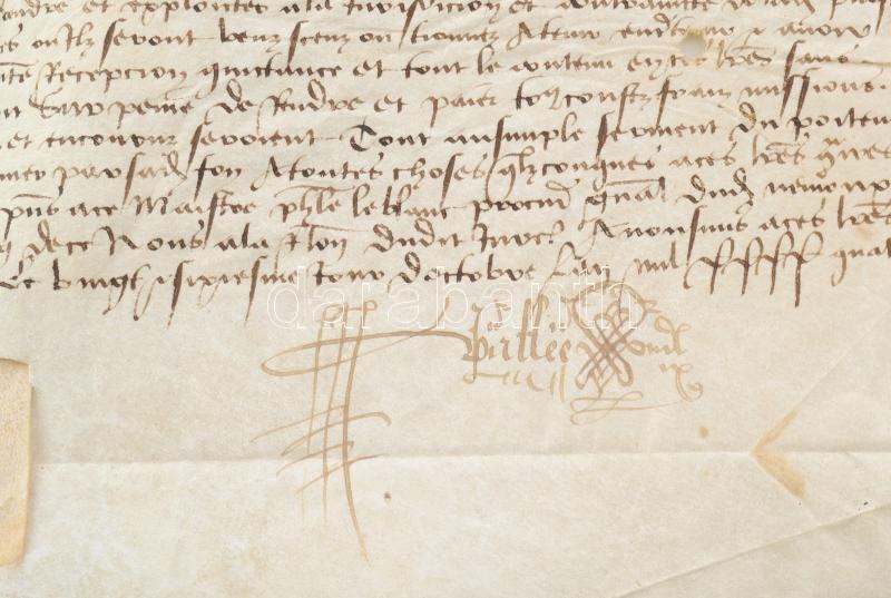 1487 Landon, Franciaországban kiállított kilépési engedély rendből? Pergamen, aláírt ...