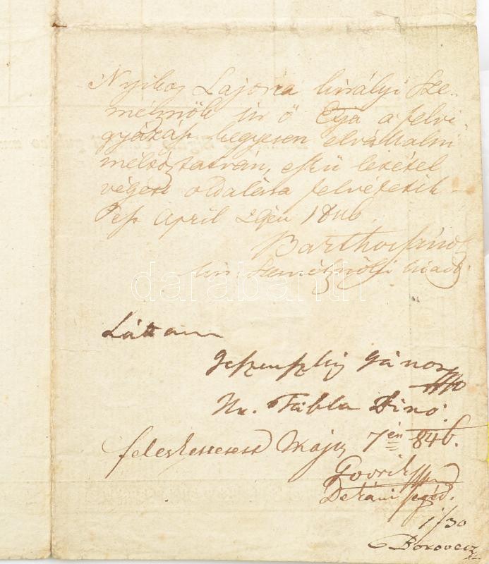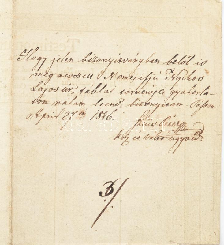 1839 Debreceni Református Kollégium bizonyítványa, aláírásokkal. Kerekes Ferenc matematikus, Kalós Mózes...