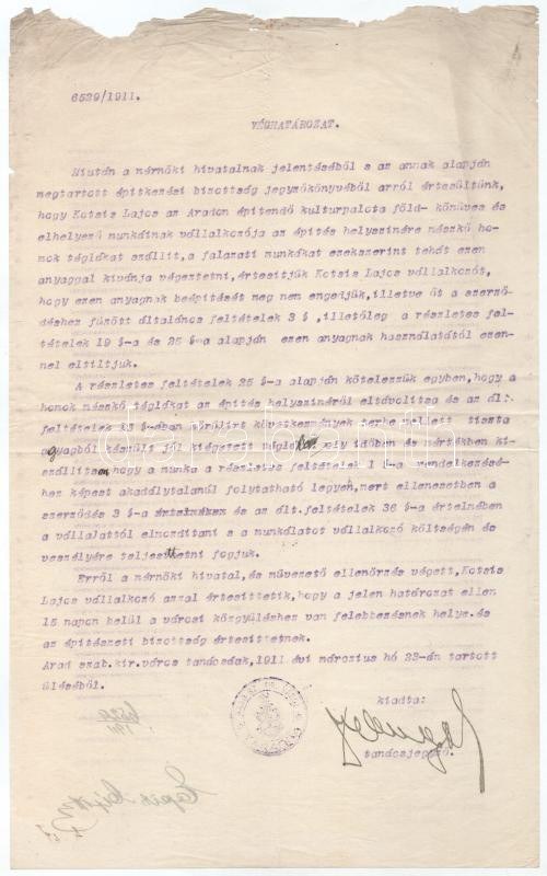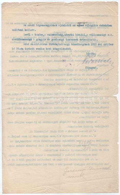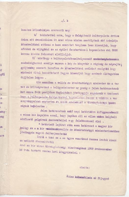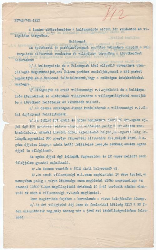 1909-1912 Arad városi kultúrpalota építésével kapcsolatos 3 db irat