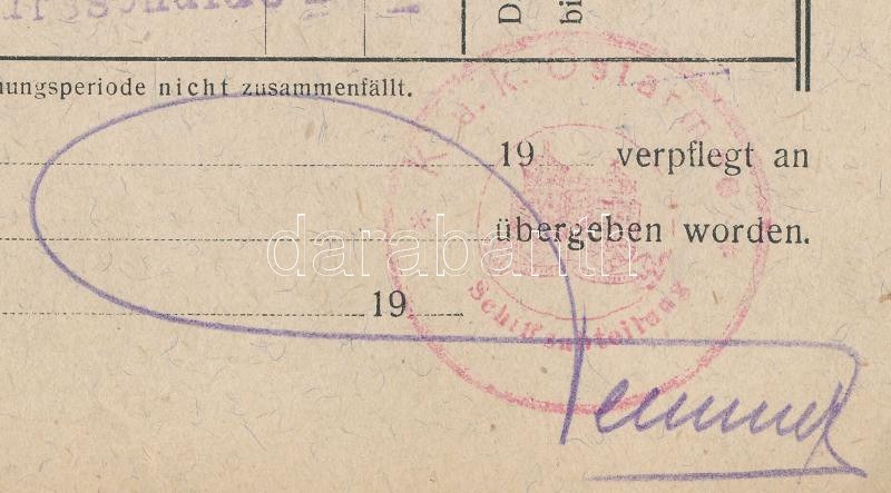 1918 Ellátmányi cédula ritka Dunai Flottila pecsétekkel Food list for the transportation of the crew and horses listed...