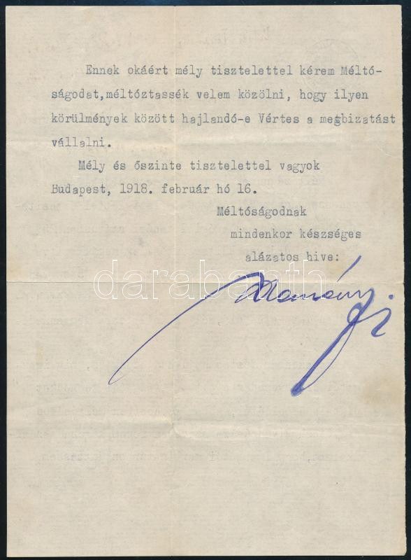 1918 Prohászka Ottokár (1858-1927) püspök kézzel írt sorai Vértes O. József részére szóló gépelt államtitkári levélen