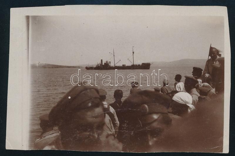 1921 Orosz hadihajó, hátoldalon feliratozott fotólap, 8×11,5 cm