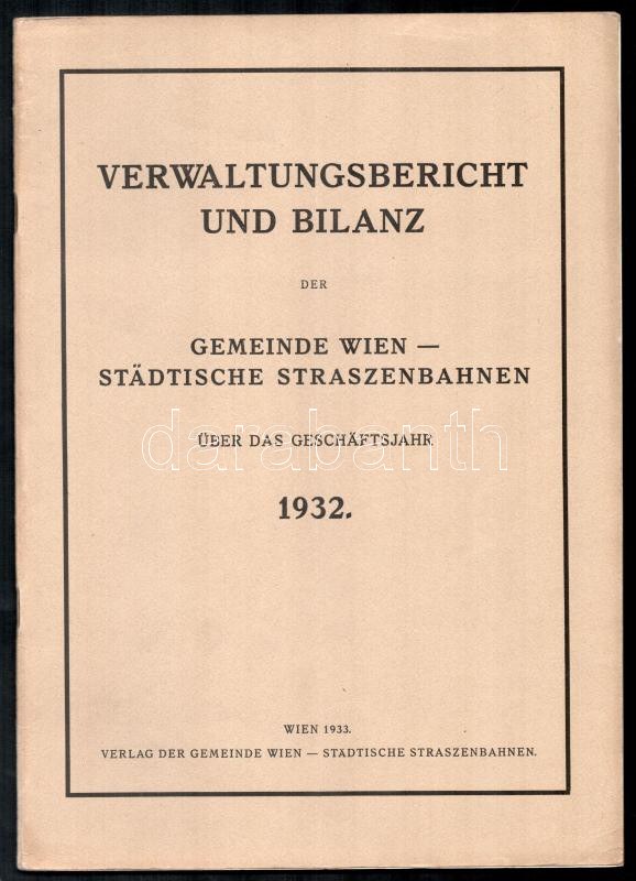 1932 Verwatungsbricht und Bilanz der Gemeinde Wien - Städtische Straszenbahnen über das Geschäftsjahr 1932....