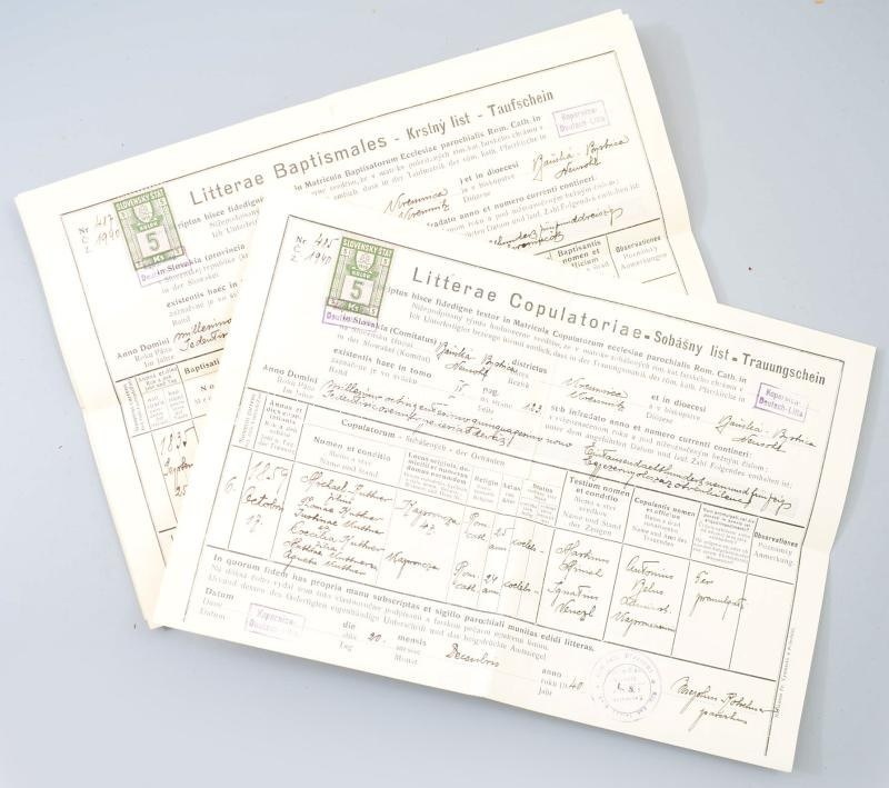1940 Barskapronca/Kopernica/Deutsch-Litta (Felvidék), 6 db anyakönyvi kivonat, latin, szlovák és német nyelven