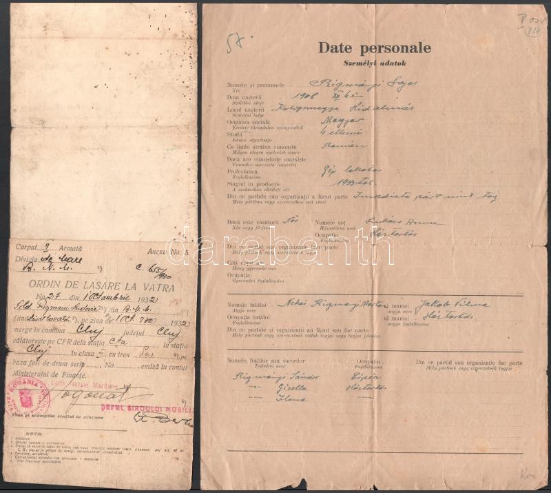1945 Rigmányi Lajos kolozsvári vasuti lakatos...