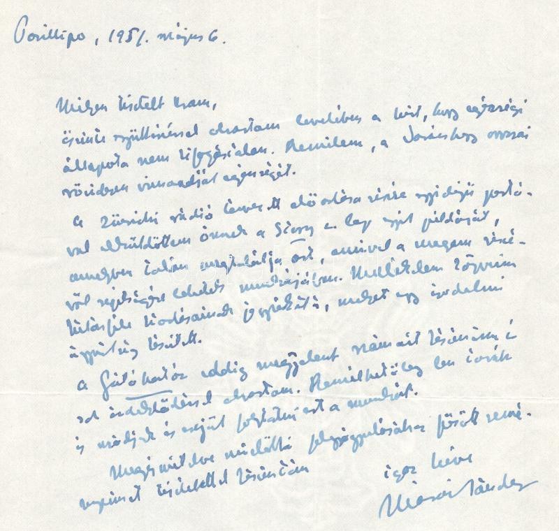 1951 Posillipo, Márai Sándor (1900-1989) író autográf levele, aláírásával, Molnár József (1918-2009...