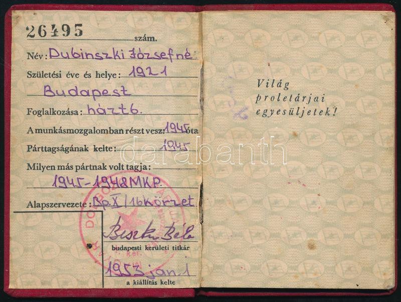 1953 MDP tagsági igazolvány Biszku Béla aláírásával