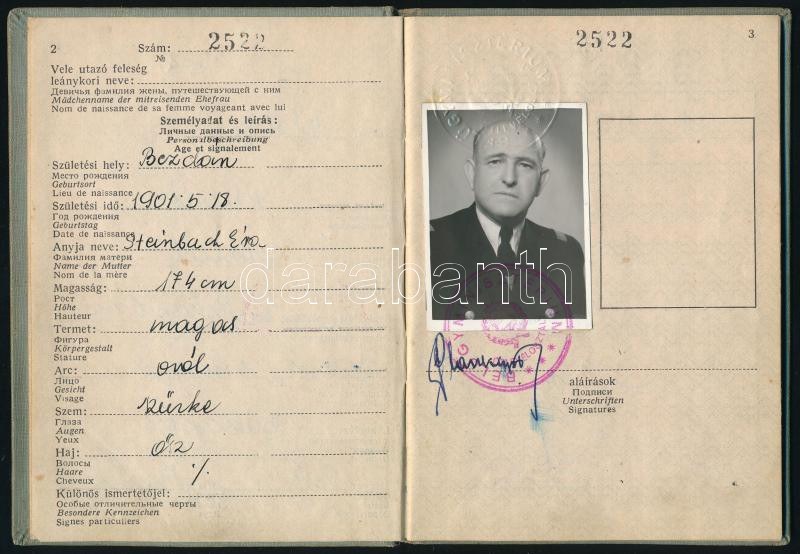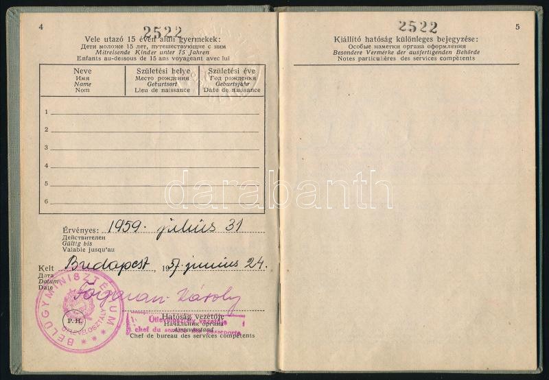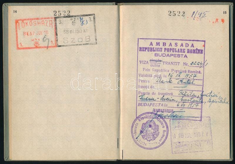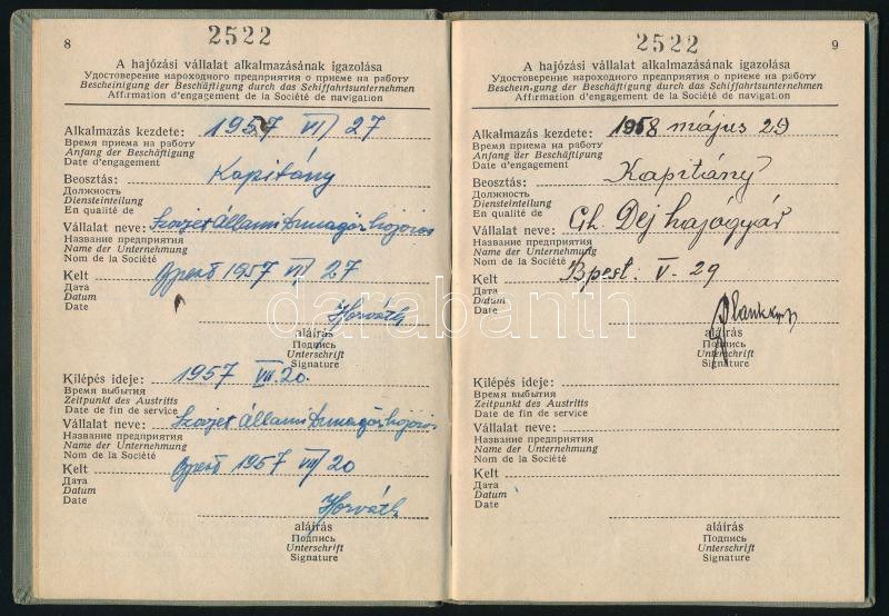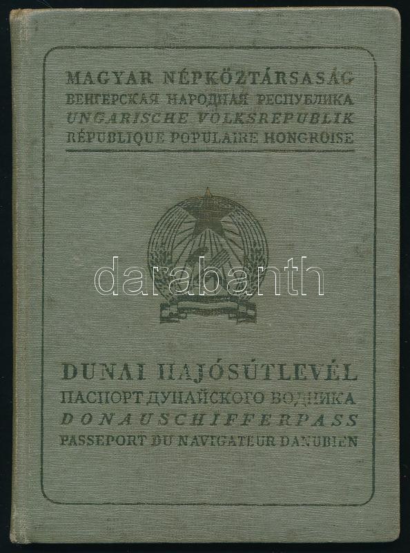 1957 Magyar Népköztársaság által kiállított dunai hajósútlevél Plank Antal hajóskapitány részére