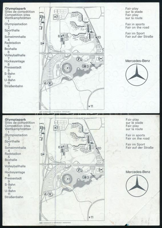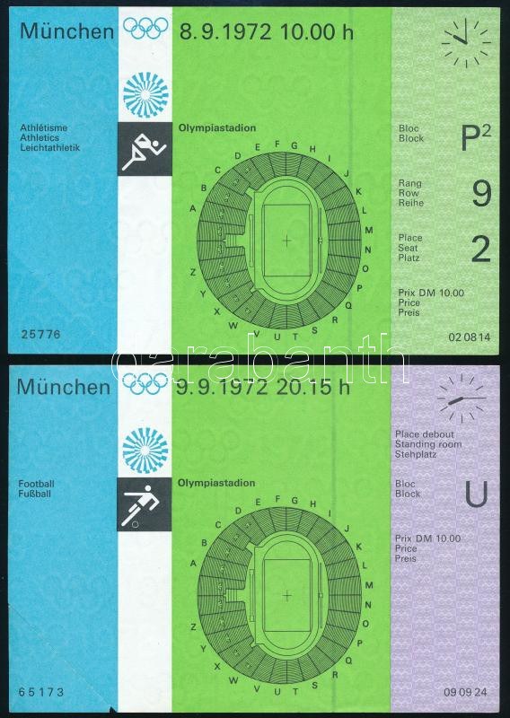 1972.IX.8-9. München, olimpiai belépőjegyek atlétikai versenyre és futballmérkőzésre, 15x10,5 cm / Munich...