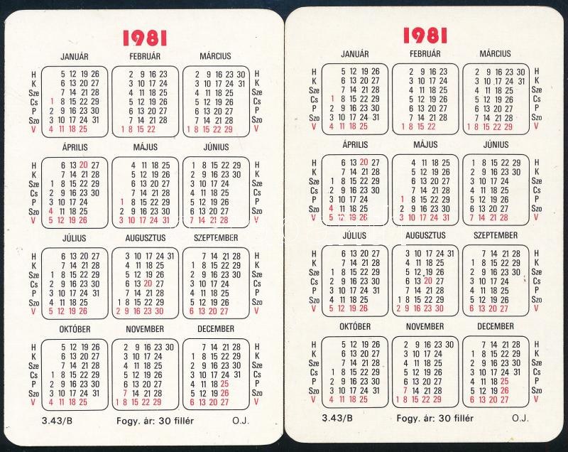 1981 Moszkvai olimpia olimpikonjainak aláírásai 2 db 1981-es kártyanaptáron, közte Kocsis Ferenc (arany, birkózás), Wladár Sándor (arany, úszás)Tóth István (ezüst, birkózás), Balla József (ezüst, birkózás) és mások aláírásaival.
