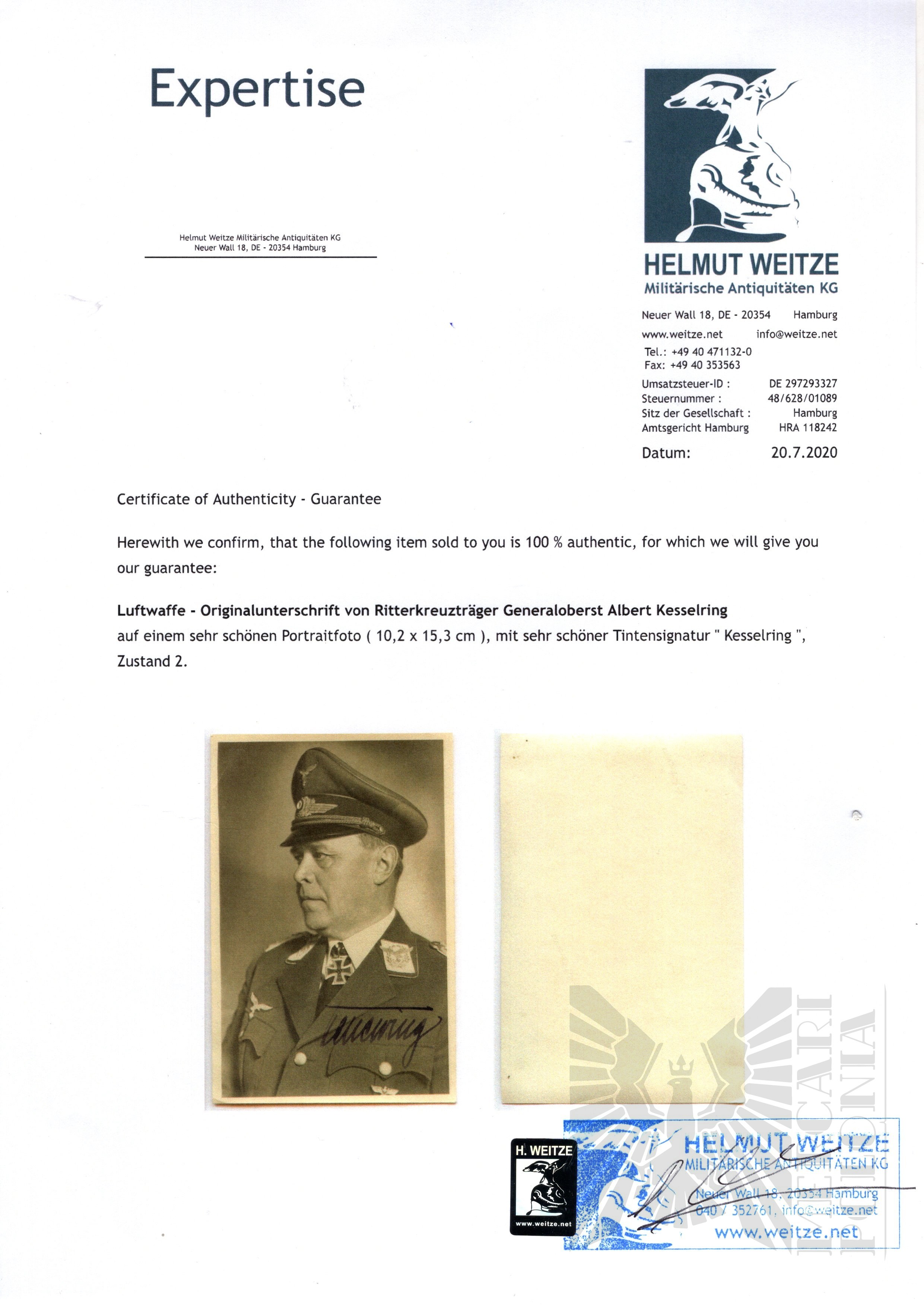 Do podpisu dołączony certyfikat oryginalności wystawiony przez znanego na całym świecie dilera militariów Helmut Weitz.