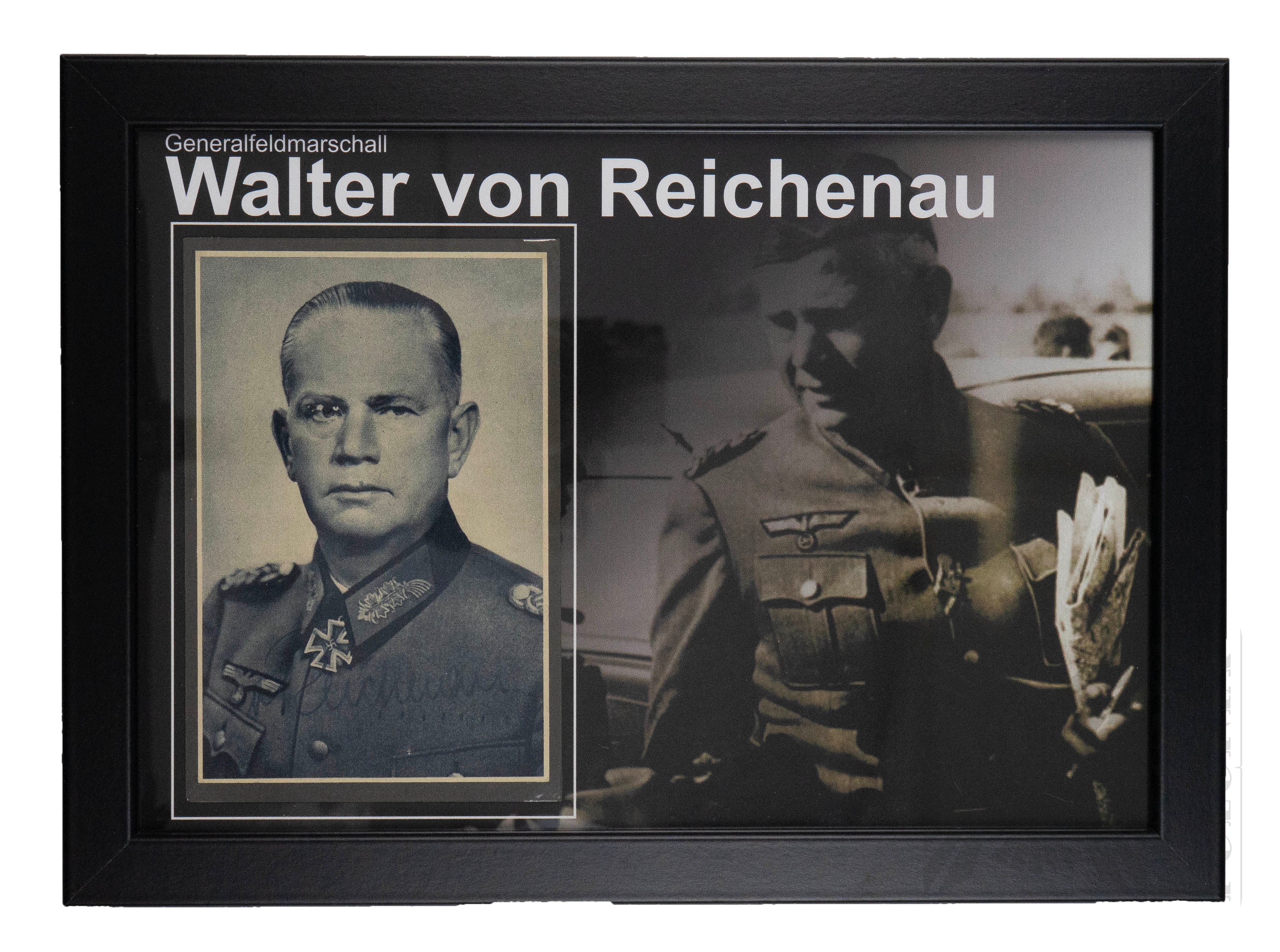 Oryginalny podpis Walter von Reichenau, niemiecki Feldmarszałek III Rzeszy, sympatyzujący z NSDAP, zbrodniarz wojenny. Podpis umieszczony na oryginalnej pocztówce.