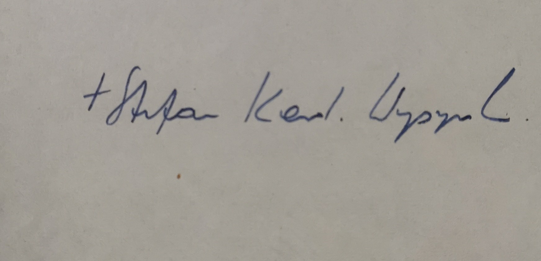 a) List na papeterii Prymasa Polski, odręcznie podpisany przez Stefana Kardynała Wyszyńskiego., 1 strona, arkusz 29,6 x 21 cm. Stan bardzo dobry: list złożony w pionie i poziomie, niewielkie przebarwienia na odwrocie.