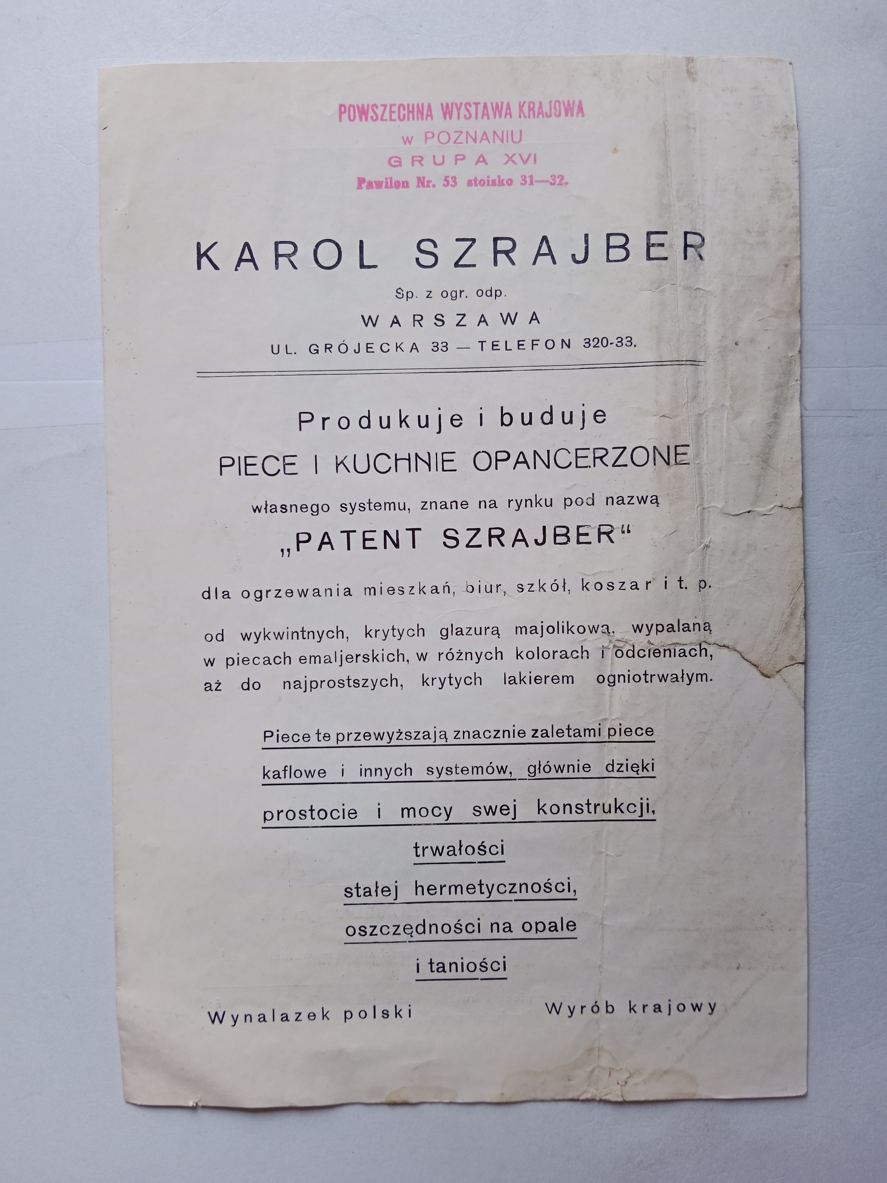 DRUK REKLAMOWY PIECE I KUCHNIE WARSZAWA KAROL SZRAJBER 1928 R