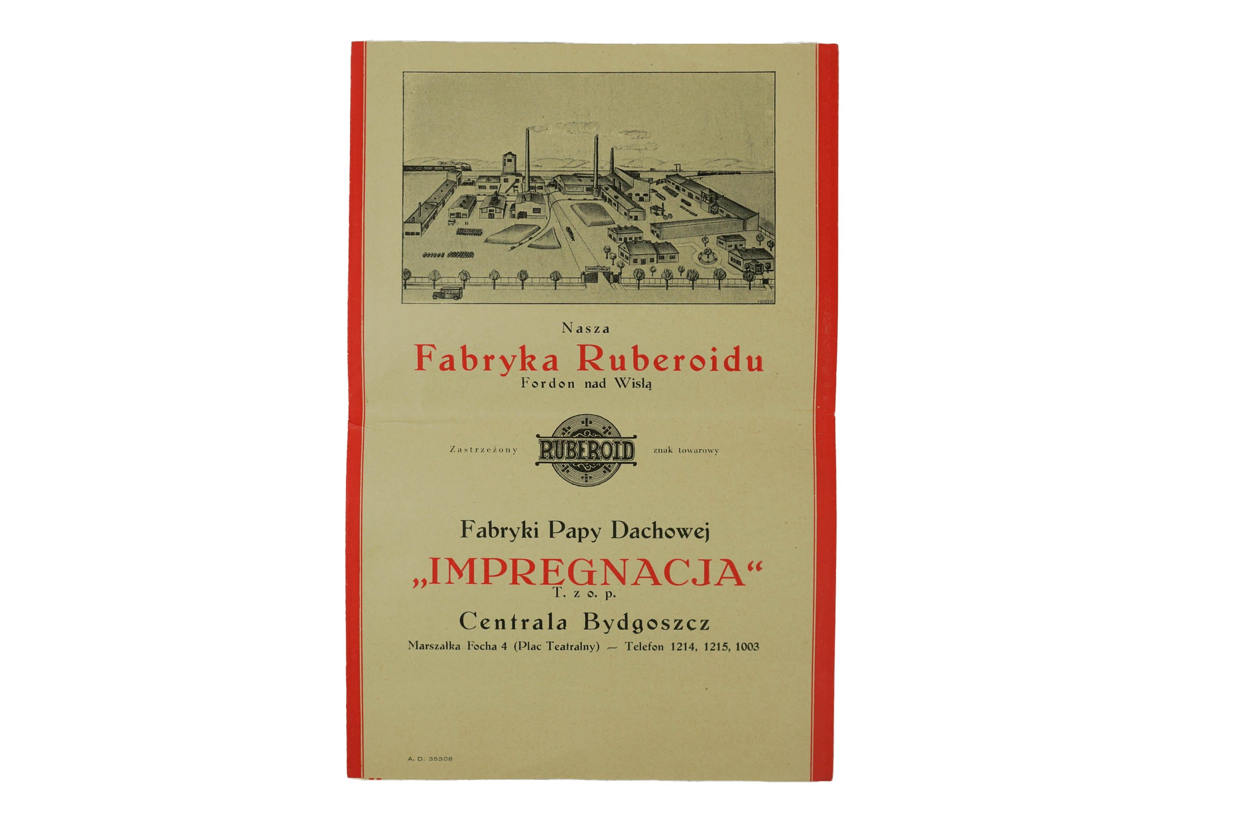 Nasza Fabryka Ruberoidu Fordon nad Wisłą, Fabryki papy dachowej "Impregnacja" T.z.o.p. Centrala Bydgoszcz, f. 15 x 23cm, rozkładana "na trzy", [2]
