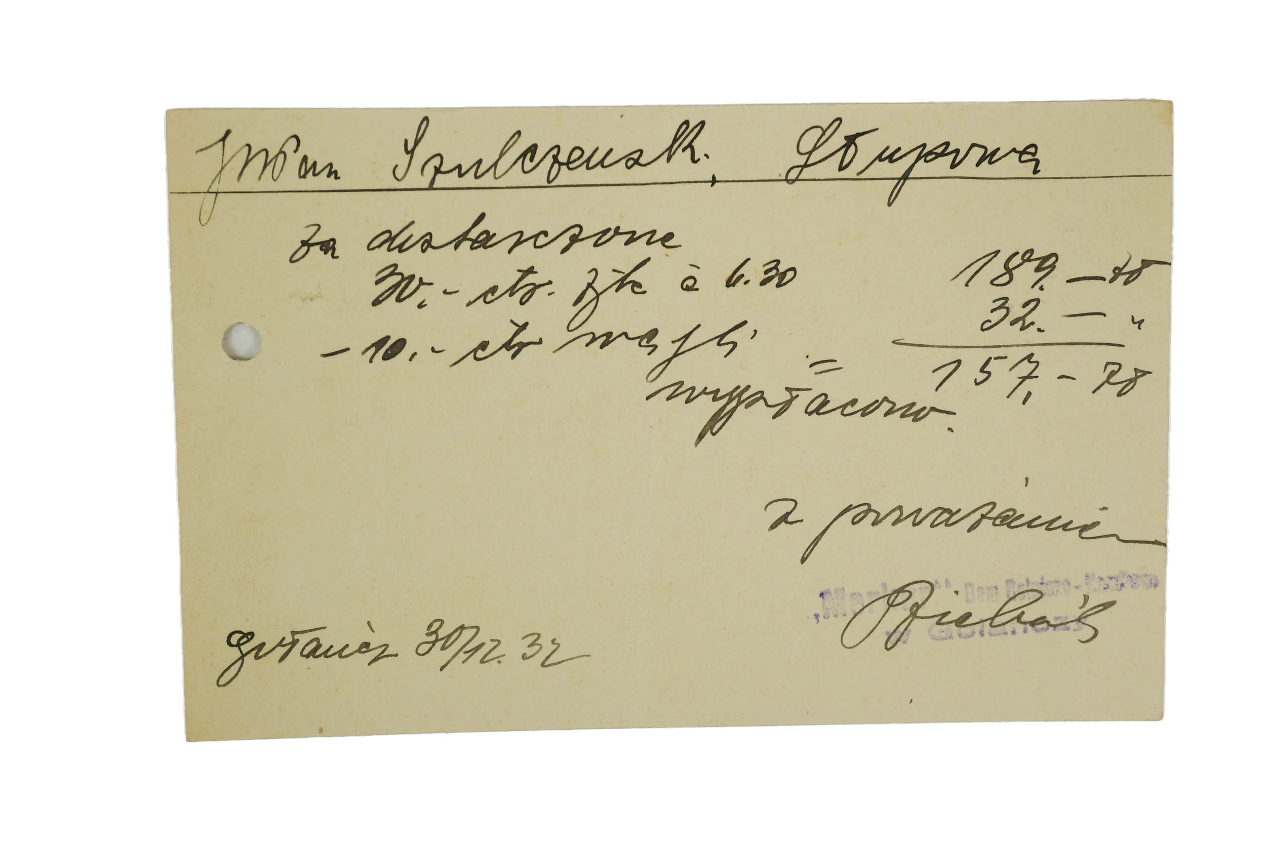 [GOŁAŃCZ] "Merkur" Dom Rolniczo-Handlowy w Gołańczy właściciel Fr. Zieliński, POCZTÓWKA z grudnia 1932r., f. 14x9cm