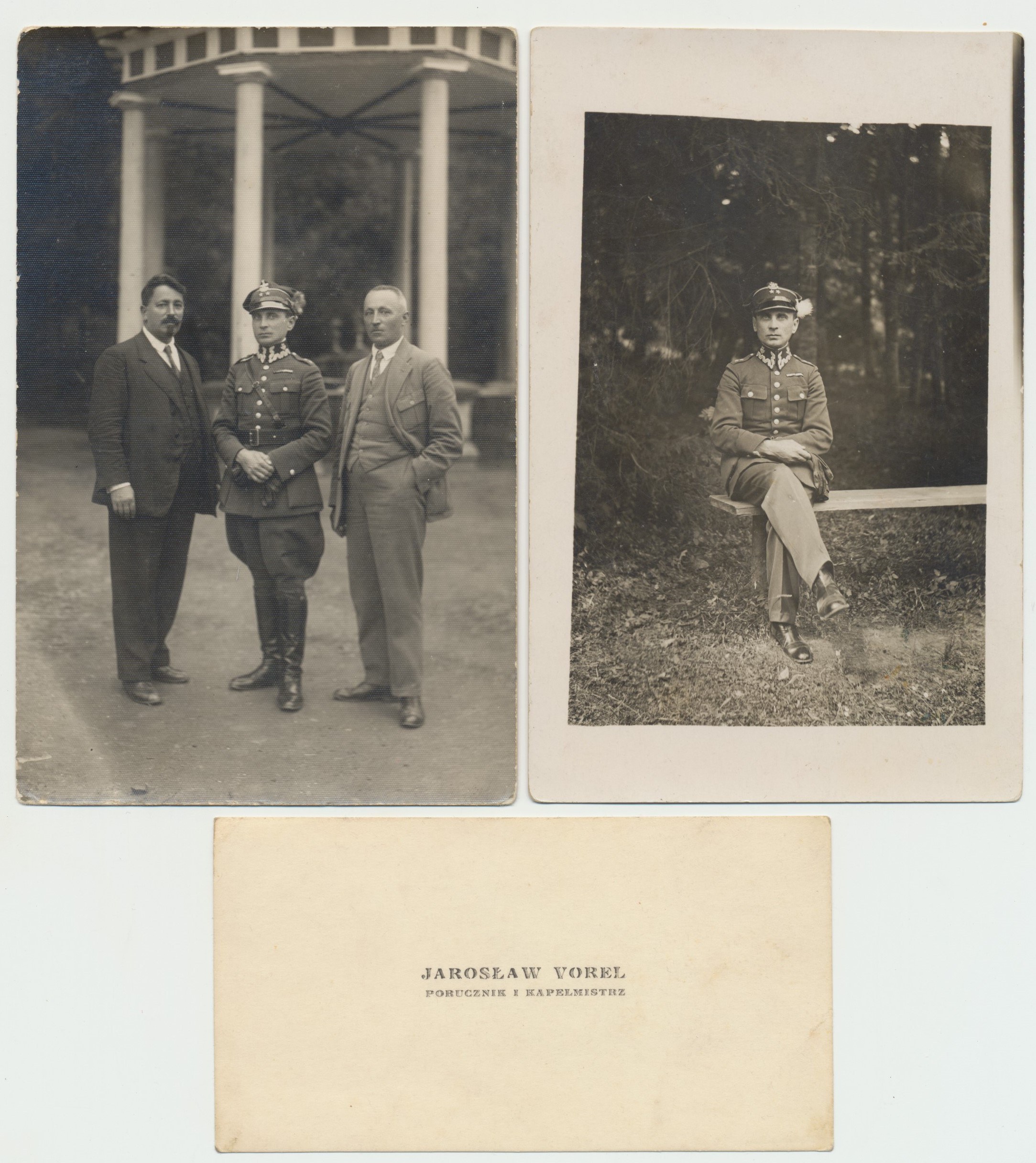 Zestaw 2 fotografii i wizytówki kapelmistrza por. Vorel'a.