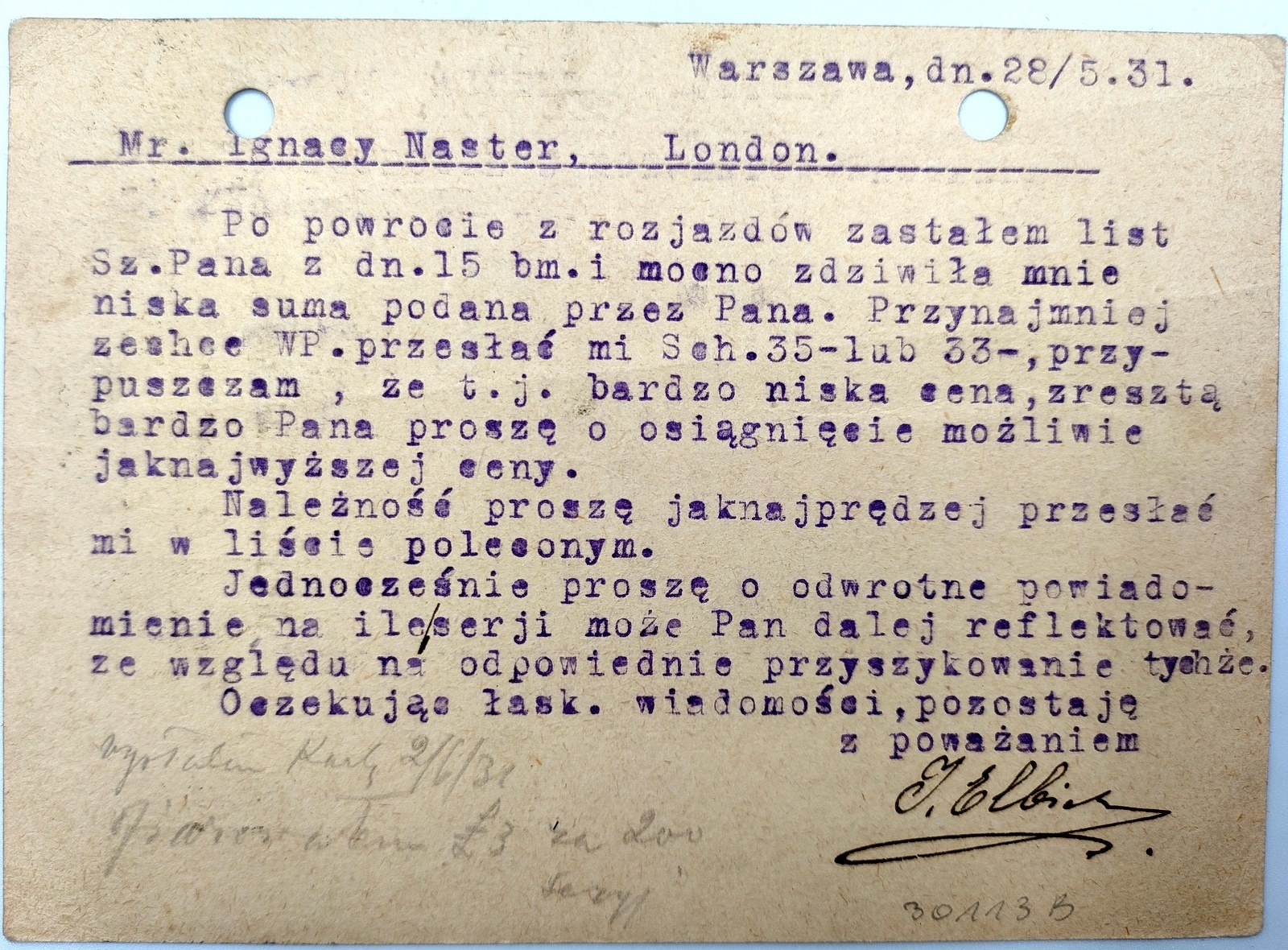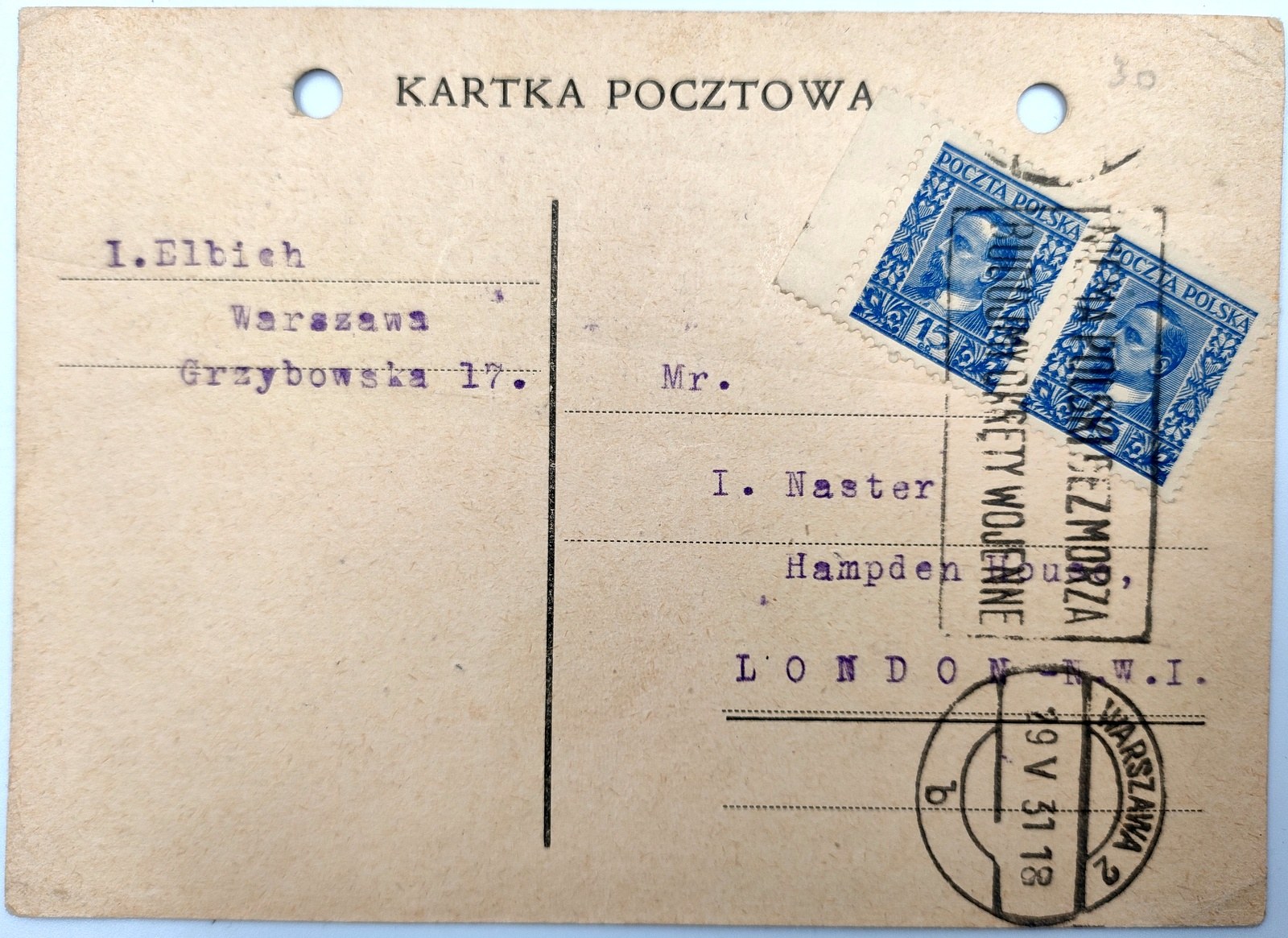 Karta pocztowa - adresowana do Londynu- Warszawa dnia 28 maj 1931