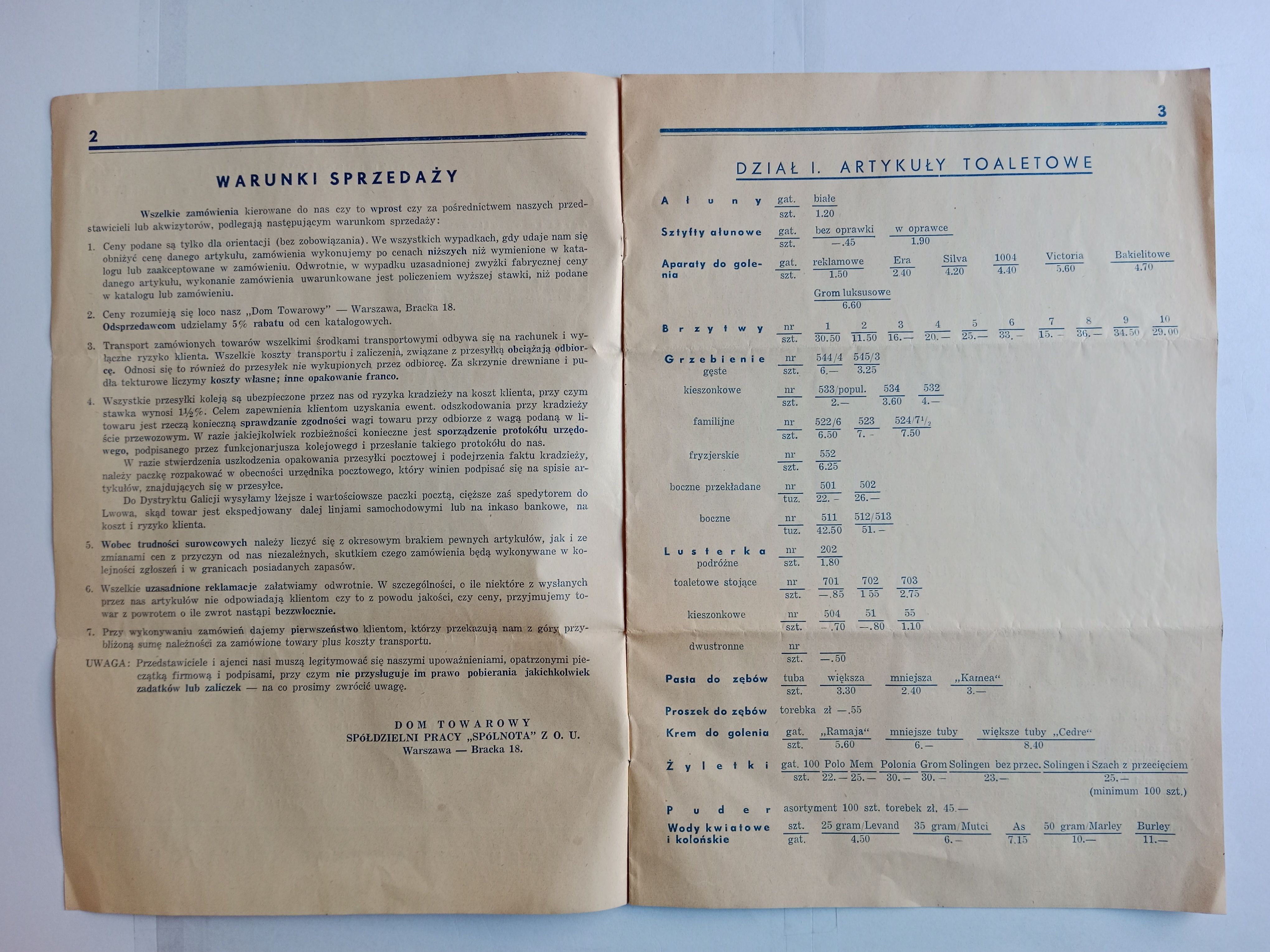 KATALOG DOM TOWAROWY SPÓLNOTA WARSZAWA ULICA BRACKA PRZEDWOJENNY