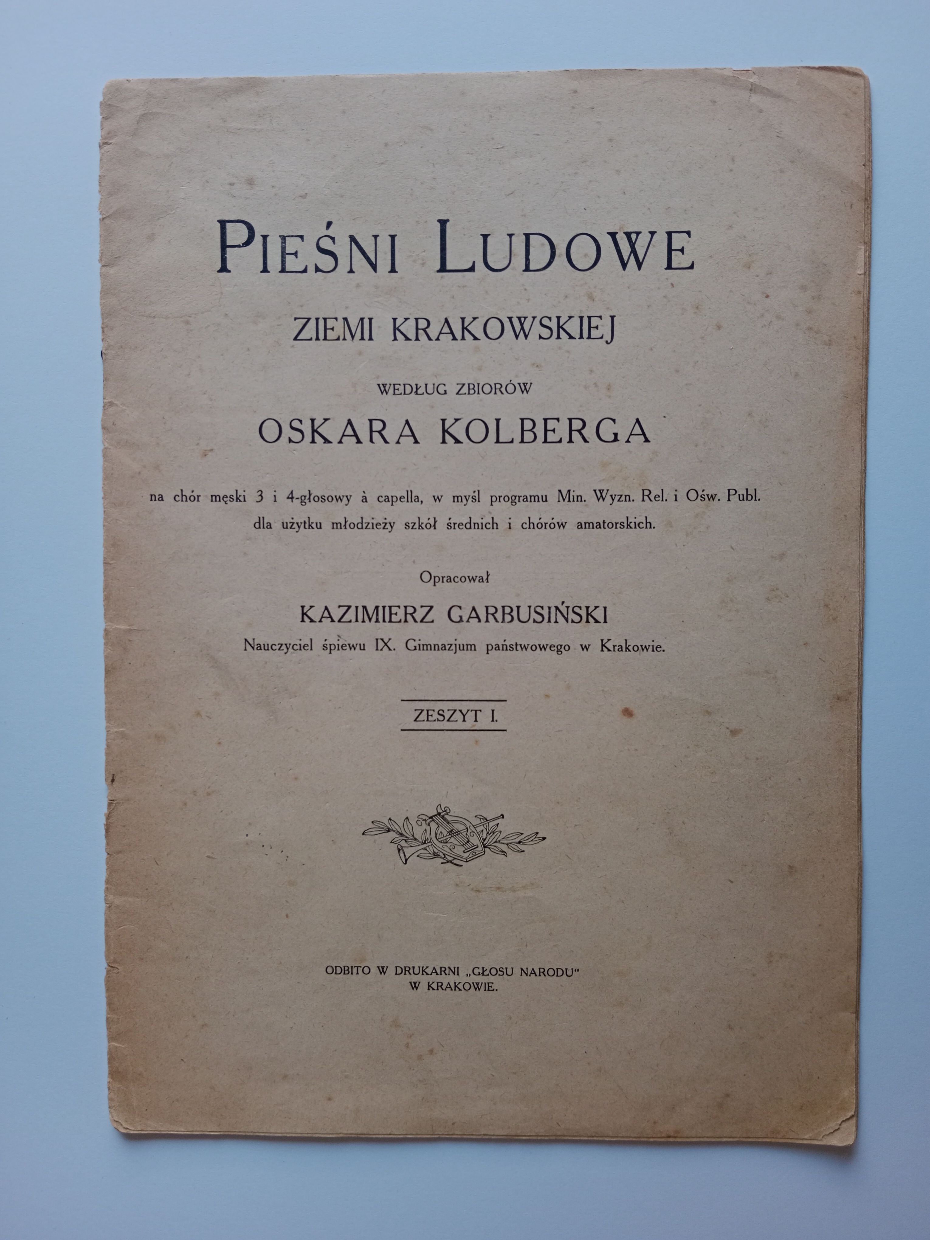 KAZIMIERZ GARBUSIŃSKI, PIEŚNI LUDOWE ZIEMI KRAKOWSKIEJ WEDŁUG ZBIORÓW OSKARA KOLBERGA